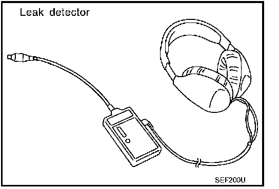 8. Locate the leak using a leak detector. Refer to "EVAPORATIVE EMISSION LINE DRAWING".