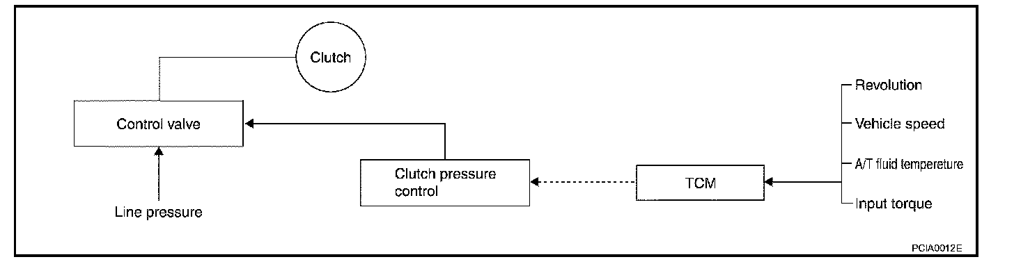 Shift ControlThe clutch pressure control solenoid is controlled by the signals from the switches and sensors. Thus, the clutch pressure is adjusted to be appropriate to the engine load state and vehicle driving state. It becomes possible to finely control the clutch hydraulic pressure with high precision and a smoother shift change characteristic is attained.