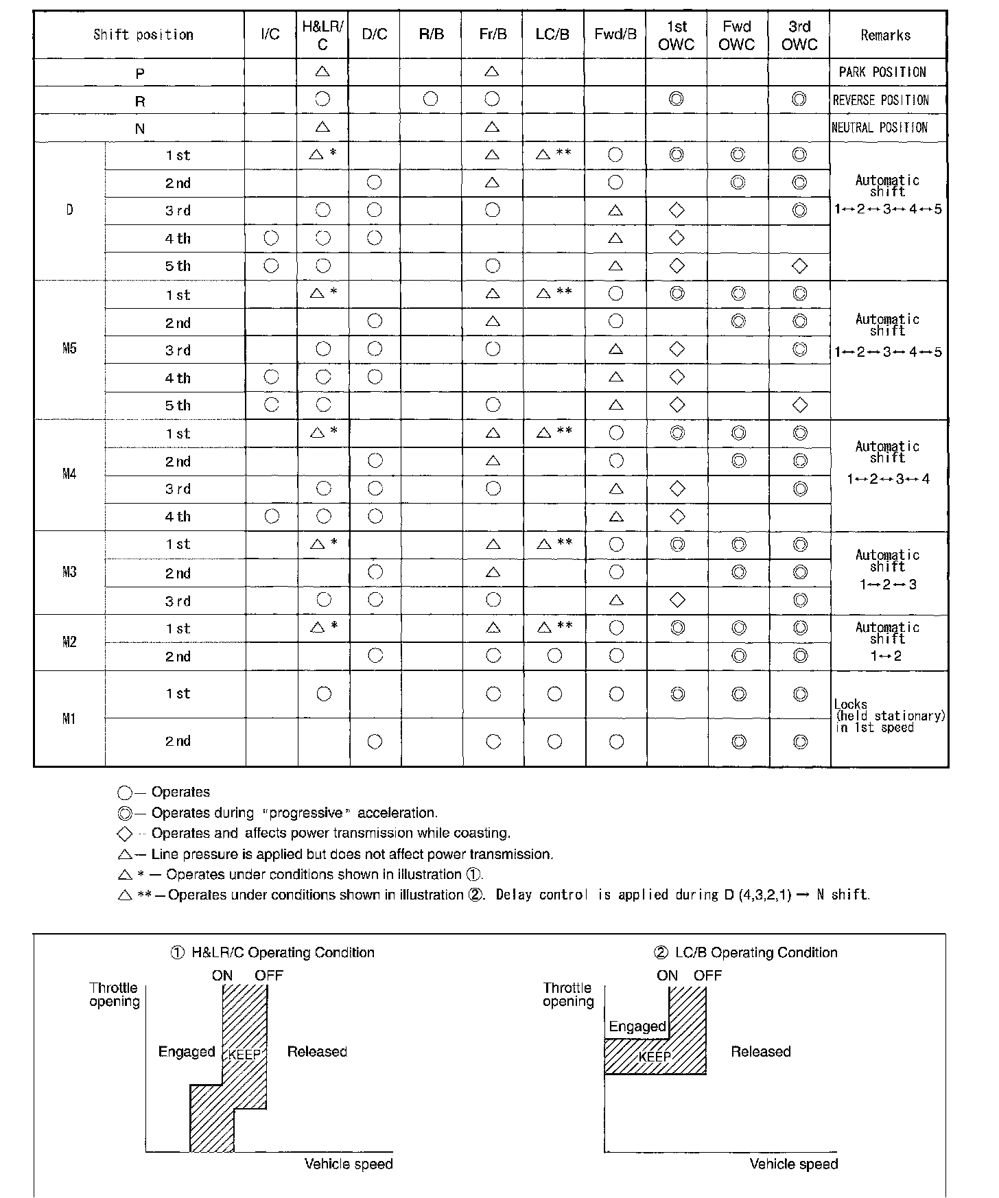 ^ The direct clutch is coupled, and the rear carrier and rear sun gear are connected. The low coast brake fastens the mid sun gear.