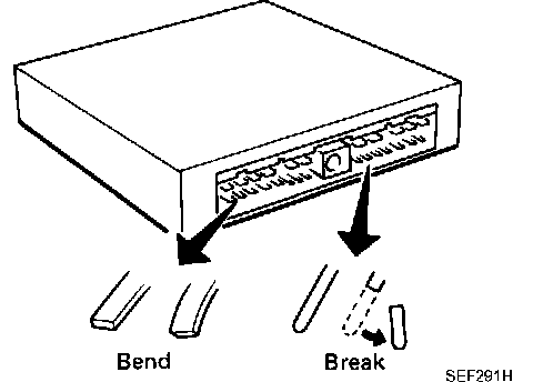 ^ When connecting or disconnecting pin connectors into or from TCM, take care not to damage pin terminals (bend or break).