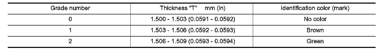 Main Bearings Selection Table (No. 1 and No. 5 journal):