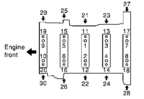 f. Tighten side bolt (M10) to 46.1 to 51.9 Nm (4.7 to 5.3 kg-m, 34 to 38 ft. lbs.) in order of 21 to 30.