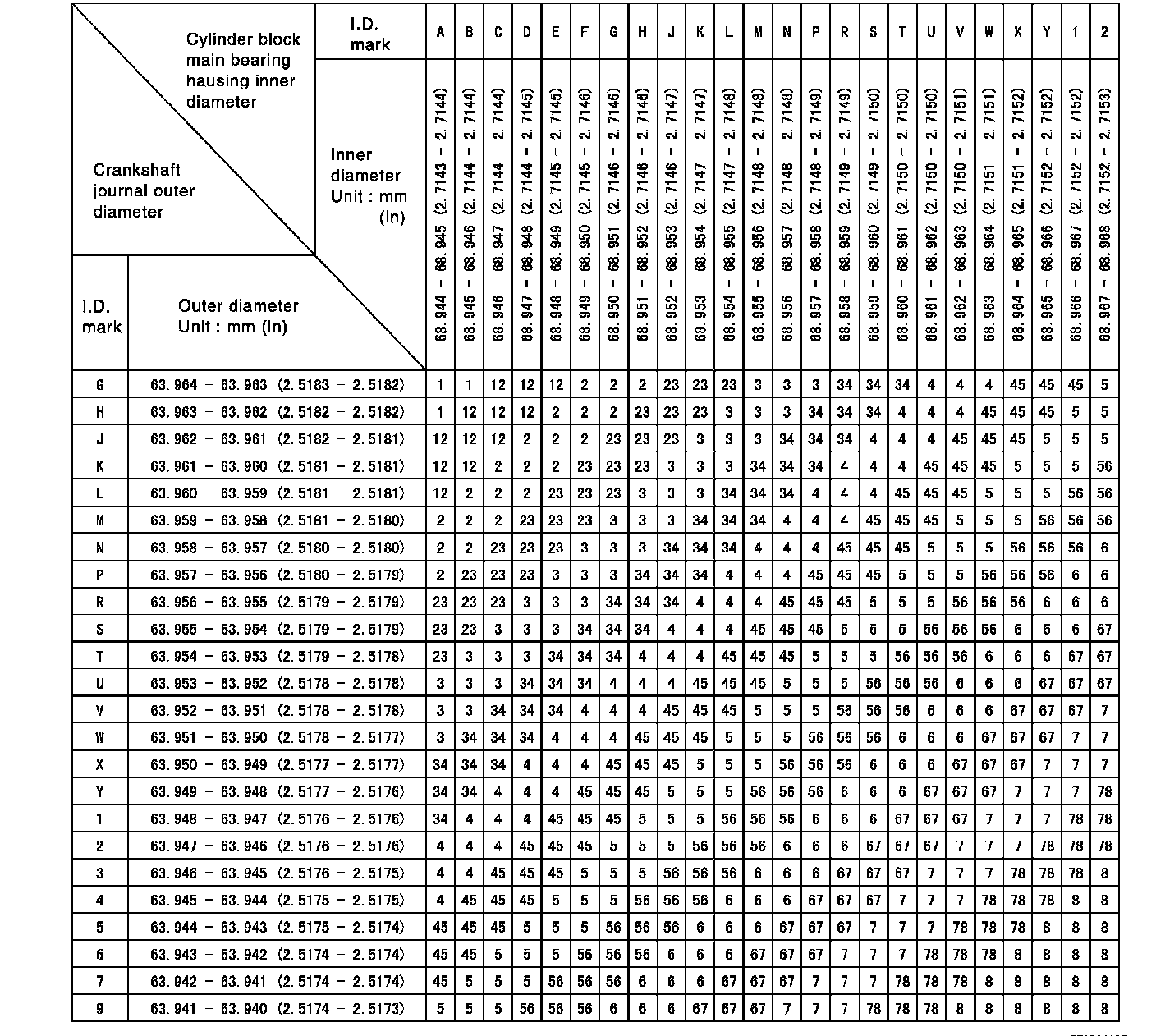 Main Bearings Selection Table (No. 2, 3 and 4 journal):