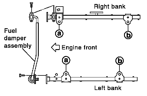 Fuel Tube Assembly Mounting Bolts "a" to "b" in illustration and in two steps.