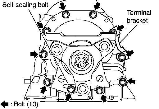 6. Tighten output shaft & companion flange complement mounting bolts to specified torque. (Because terminal bracket is tightened together with output shaft & companion flange, it should be installed before procedure 5.)