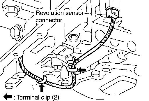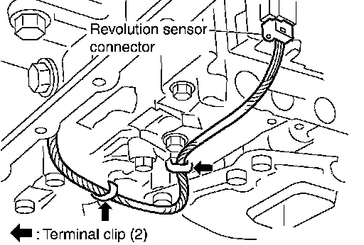 13. Straighten terminal clips to free revolution sensor harness then remove terminal clips.