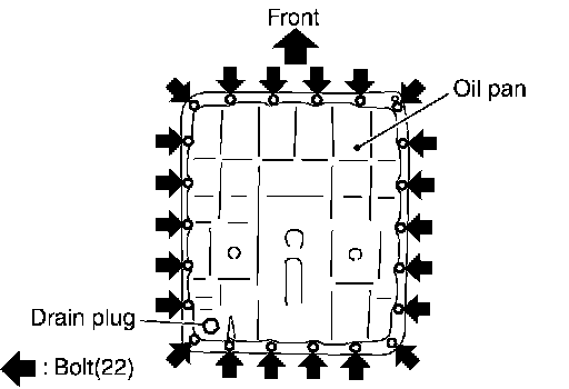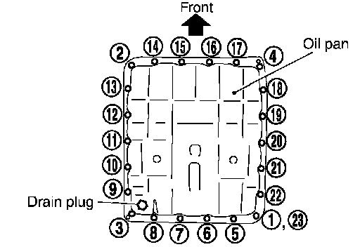 c. Tighten oil pan mounting bolts to the specified torque in numerical order shown in the figure after temporarily tightening them.