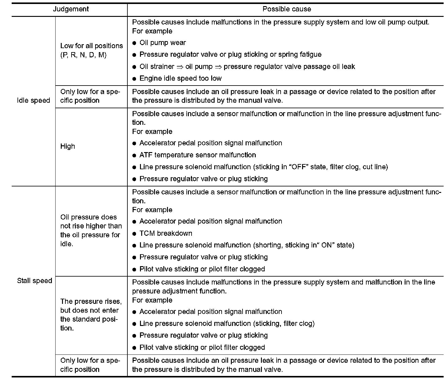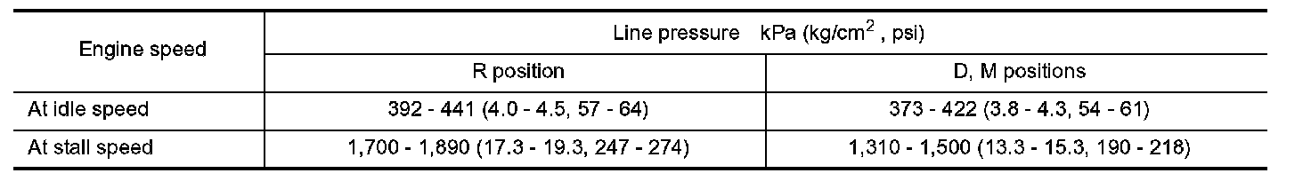 ^ When measuring the line pressure at the stall speed, refer to "STALL TEST". Stall Test