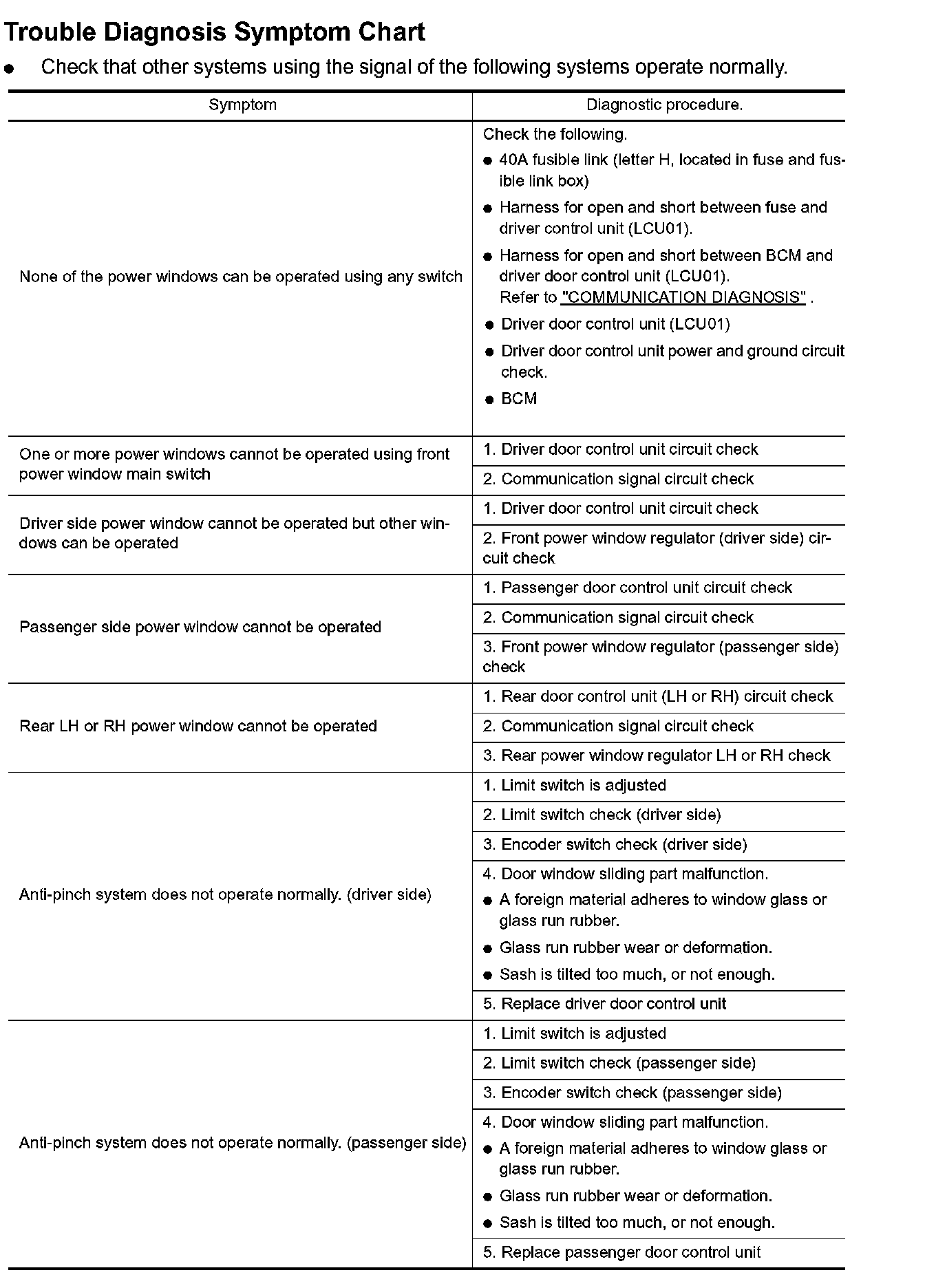 Trouble Diagnosis Symptom Chart Part 1: