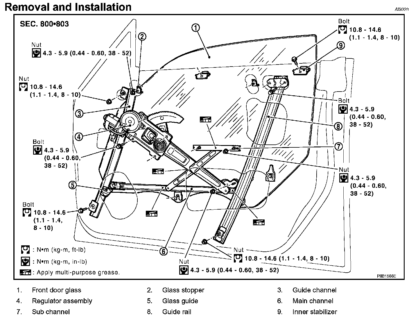FRONT DOOR GLASS AND REGULATORRemoval and Installation