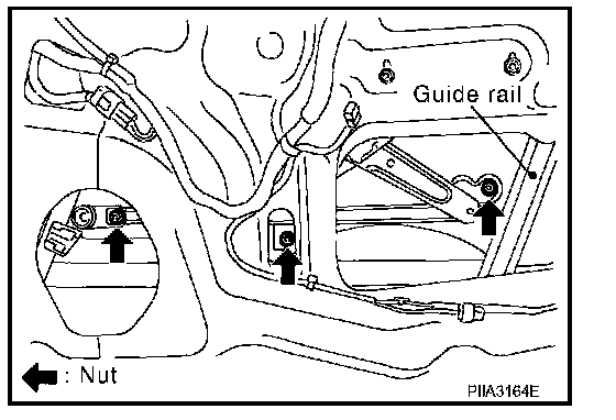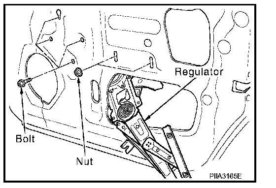 7. Operate power window main switch to raise/lower door window until glass mounting nuts can be seen.