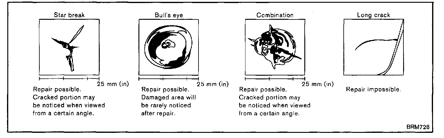 Damage must be at least 5 cm (1 97 in) inward from the windshield glass edges. The diameter of the damaged area must be 25 mm (0.98 in) or less