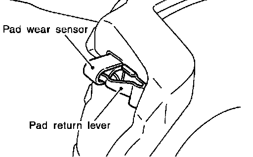 CAUTION: The CLZ31VA inner pad and outer pad have pad-return mechanism on upper side of pad retainer. When installing CLZ31VA pad to torque member, be sure to install pad return lever to pad wear sensor securely.