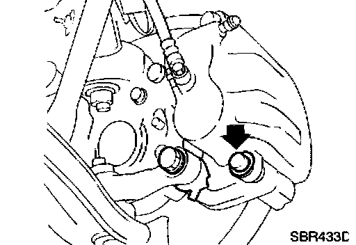 It is not necessary to remove connecting bolt except for disassembly or replacement of caliper assembly. In this case, suspend cylinder body with wire so as not to stretch brake hose.