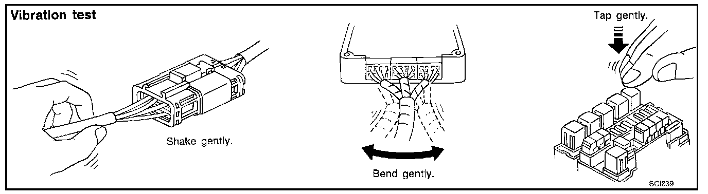 Determine which connectors and wiring harness would affect the electrical system you are inspecting. Gently shake each connector and harness while monitoring the system for the incident you are trying to duplicate. This test may indicate a loose or poor electrical connection.