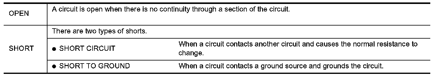 The continuity check is used to find an open in the circuit. The digital multimeter (DMM) set on the resistance function will indicate an open circuit as over limit (no beep tone or no ohms symbol). Make sure to always start with the DMM at the highest resistance level.