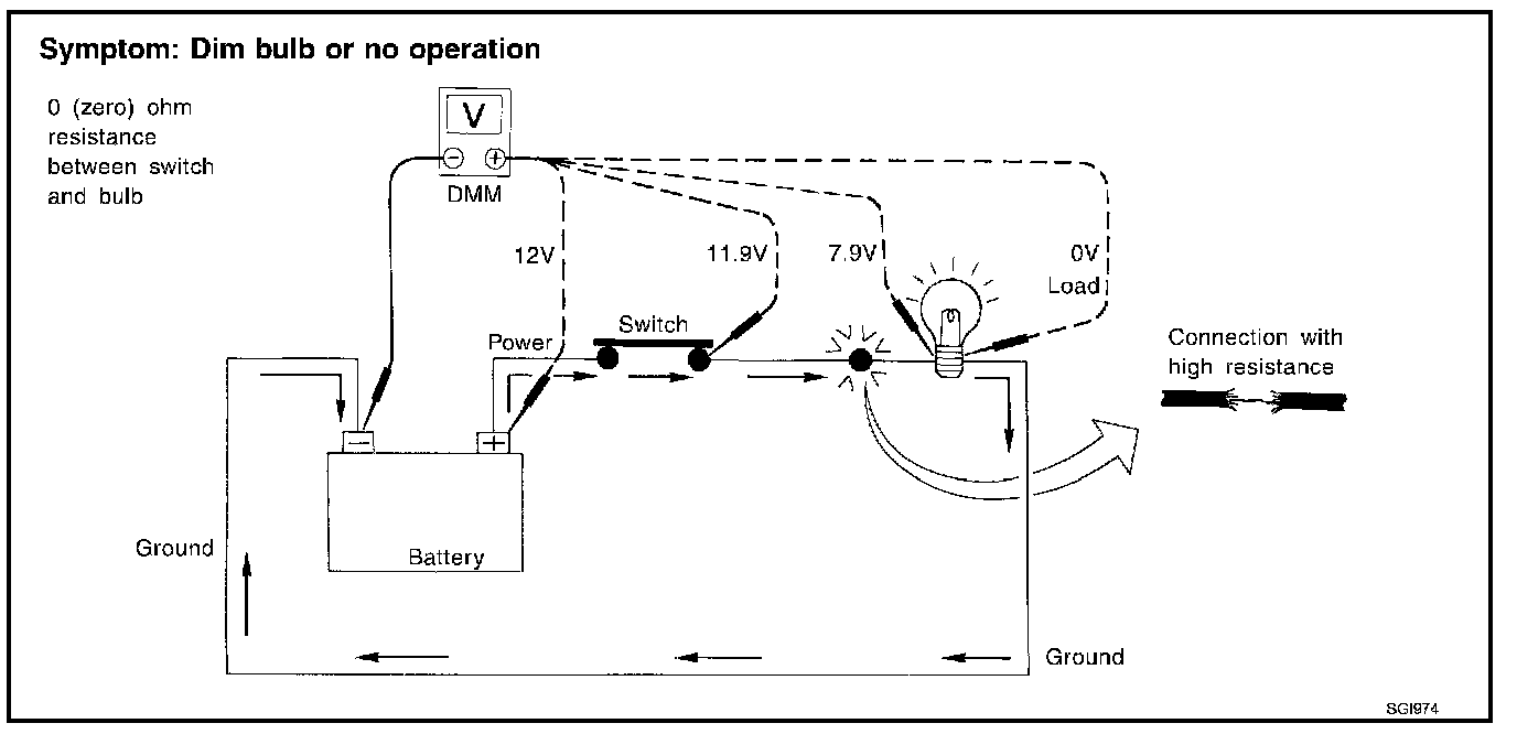 Note in the illustration that there is an excessive 4.1 volt drop between the battery and the bulb.
