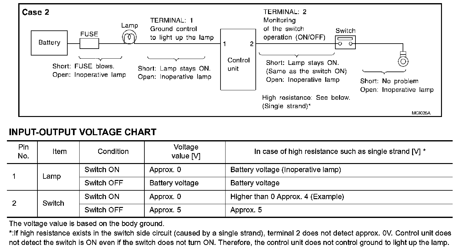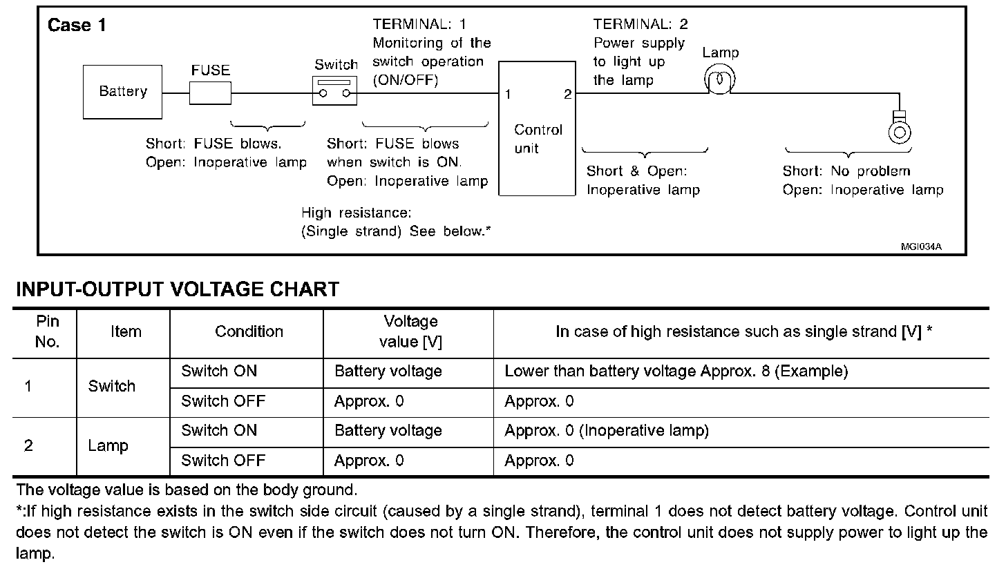 - When using a DMM, be careful not to let test probes get close to each other to prevent the power transistor in the control unit from damaging battery voltage because of short circuiting.