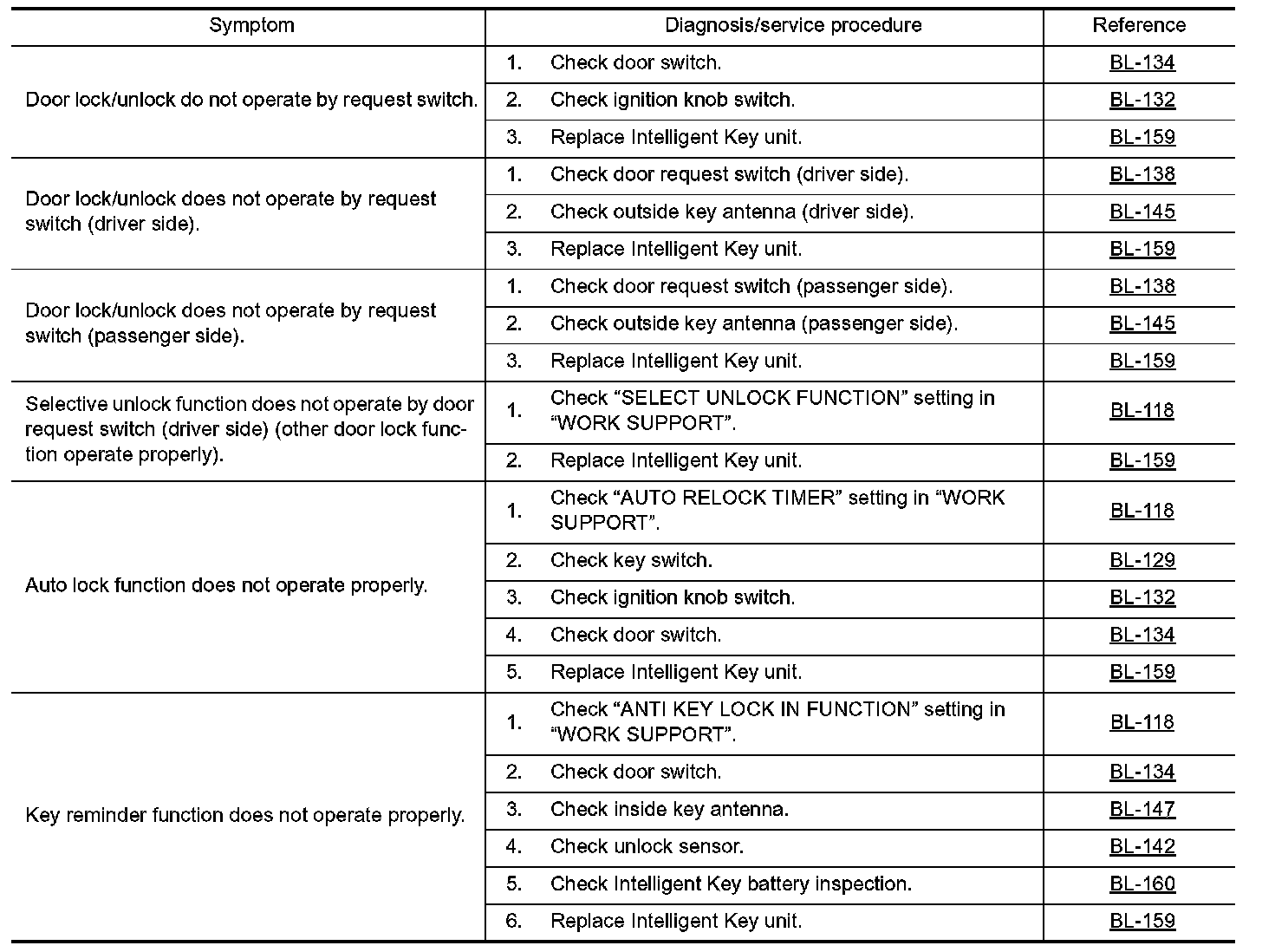 - Before performing the diagnosis in the table, check "Trouble Diagnosis Procedure". Refer to "Trouble Diagnosis Procedure".