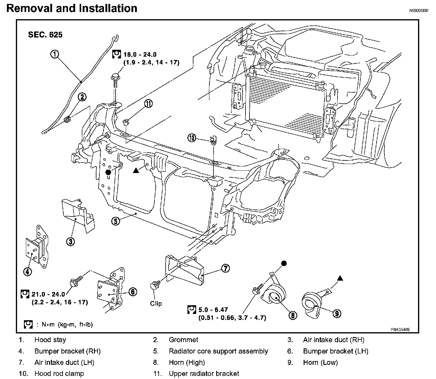 2. Remove front bumper, bumper reinforcement and bumper bracket.
