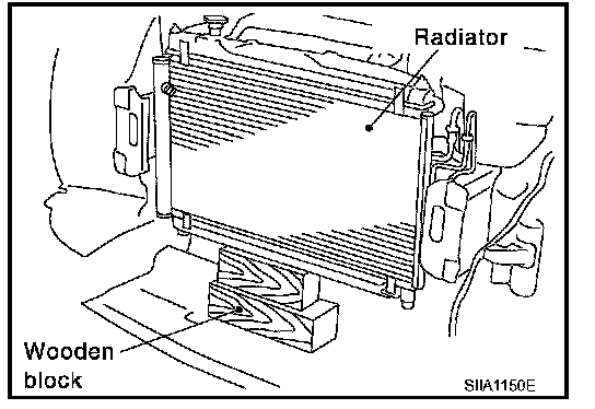 CAUTION: Put a wooden block under the radiator assembly to prevent the radiator assembly from falling.