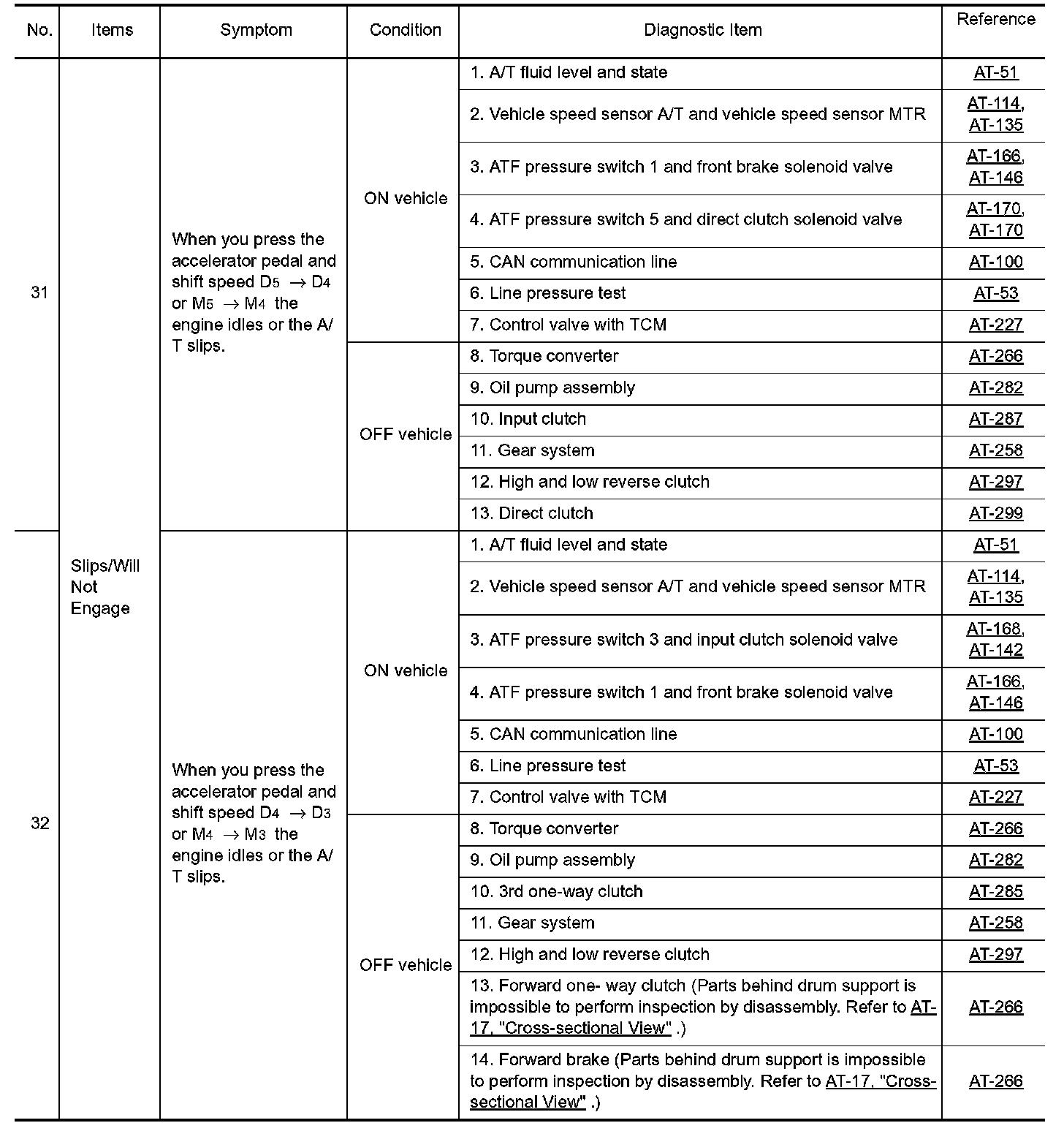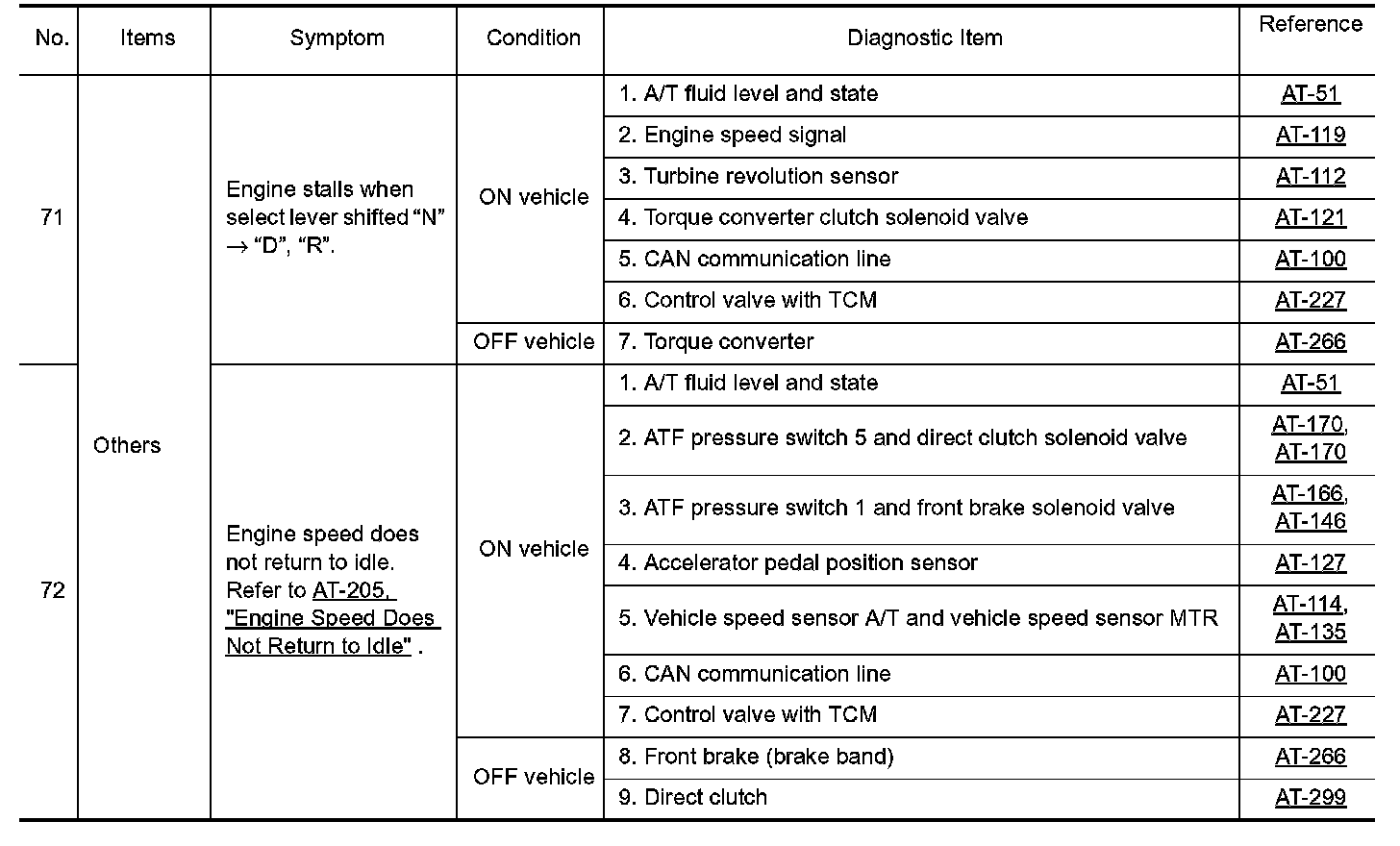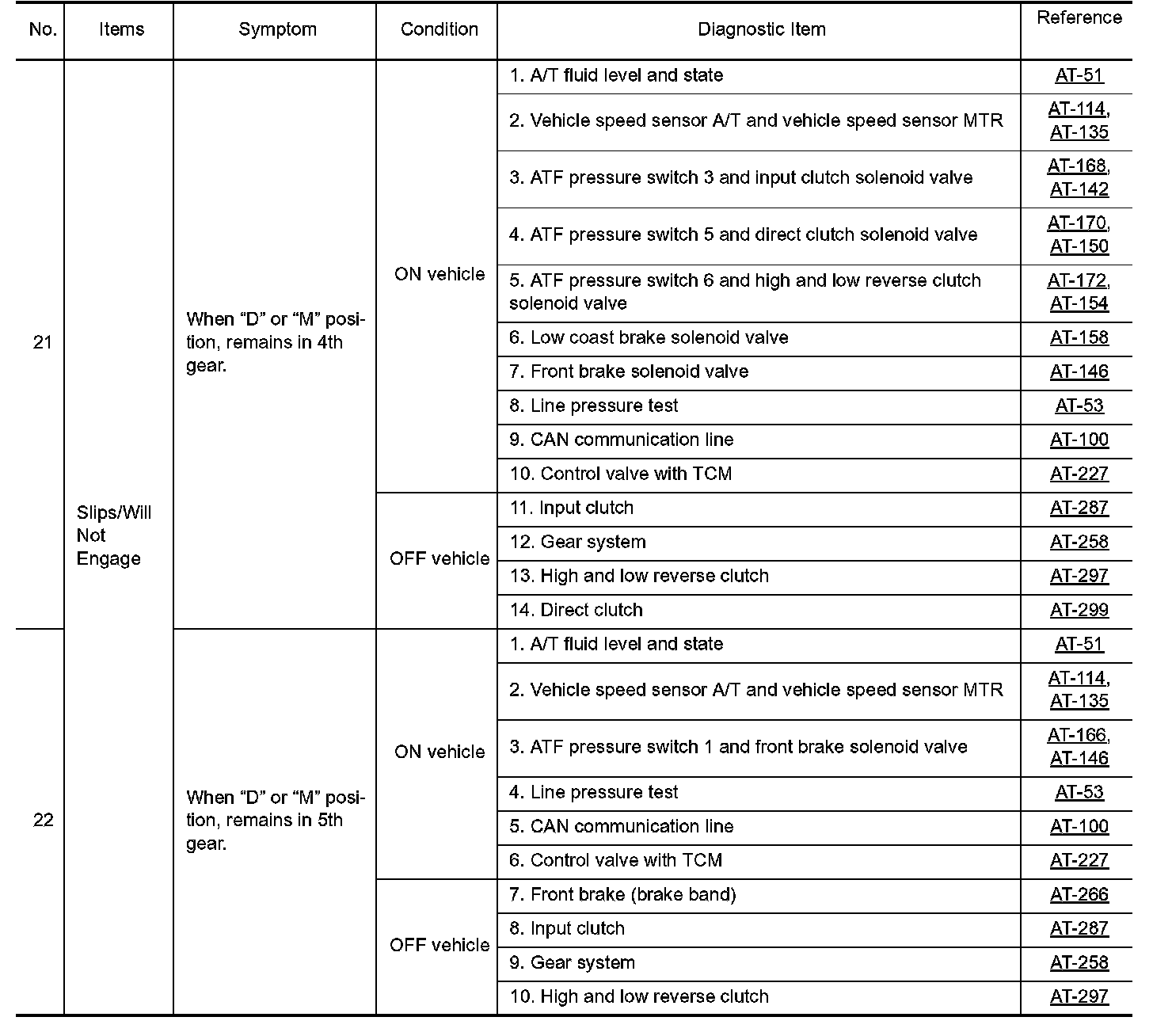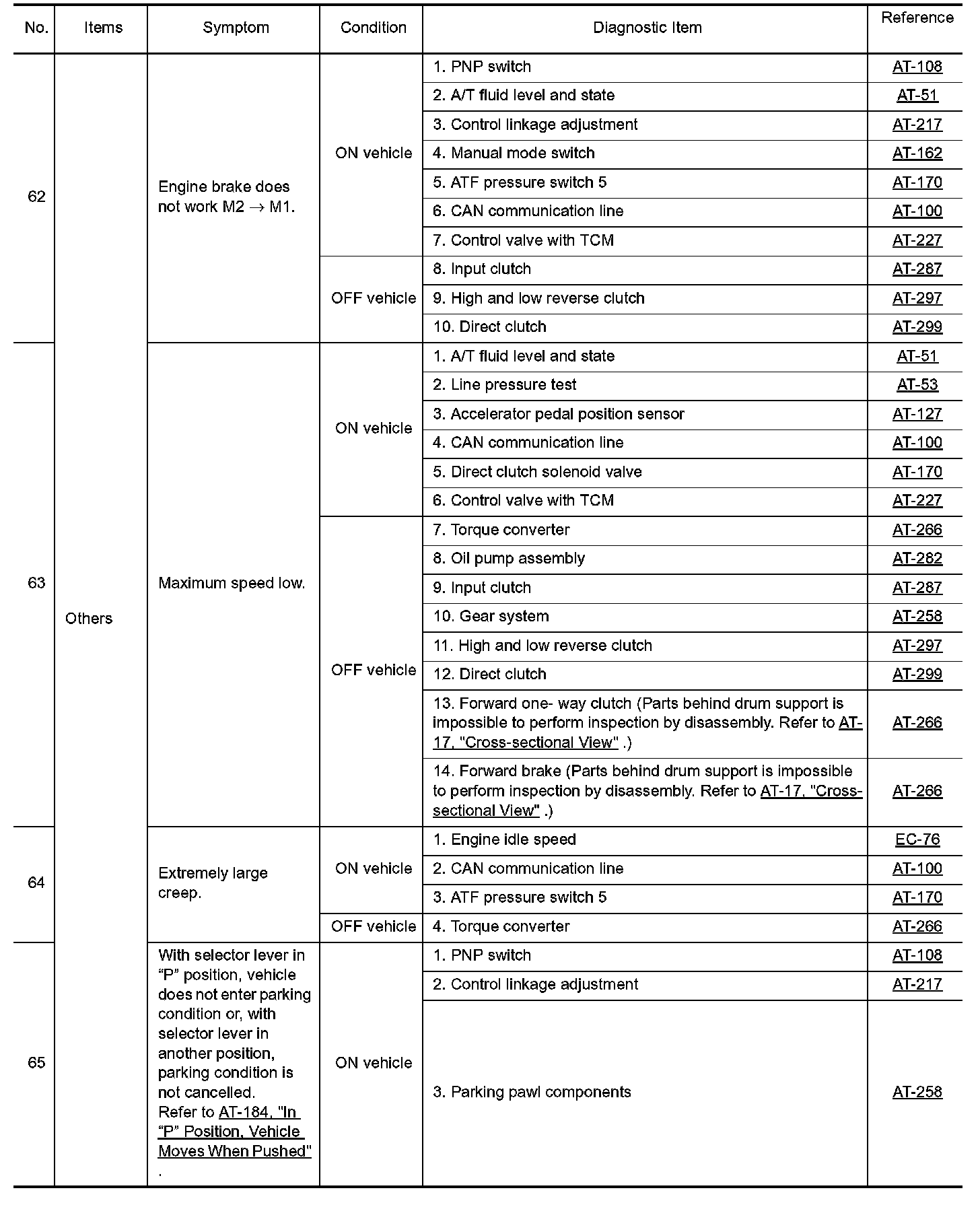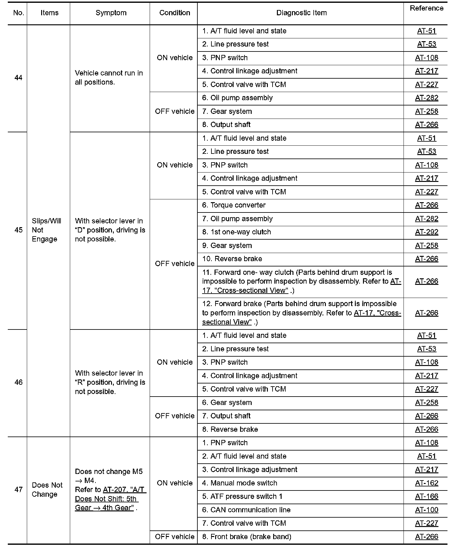 Overhaul and inspect inside the A/T only if A/T fluid condition is NG.