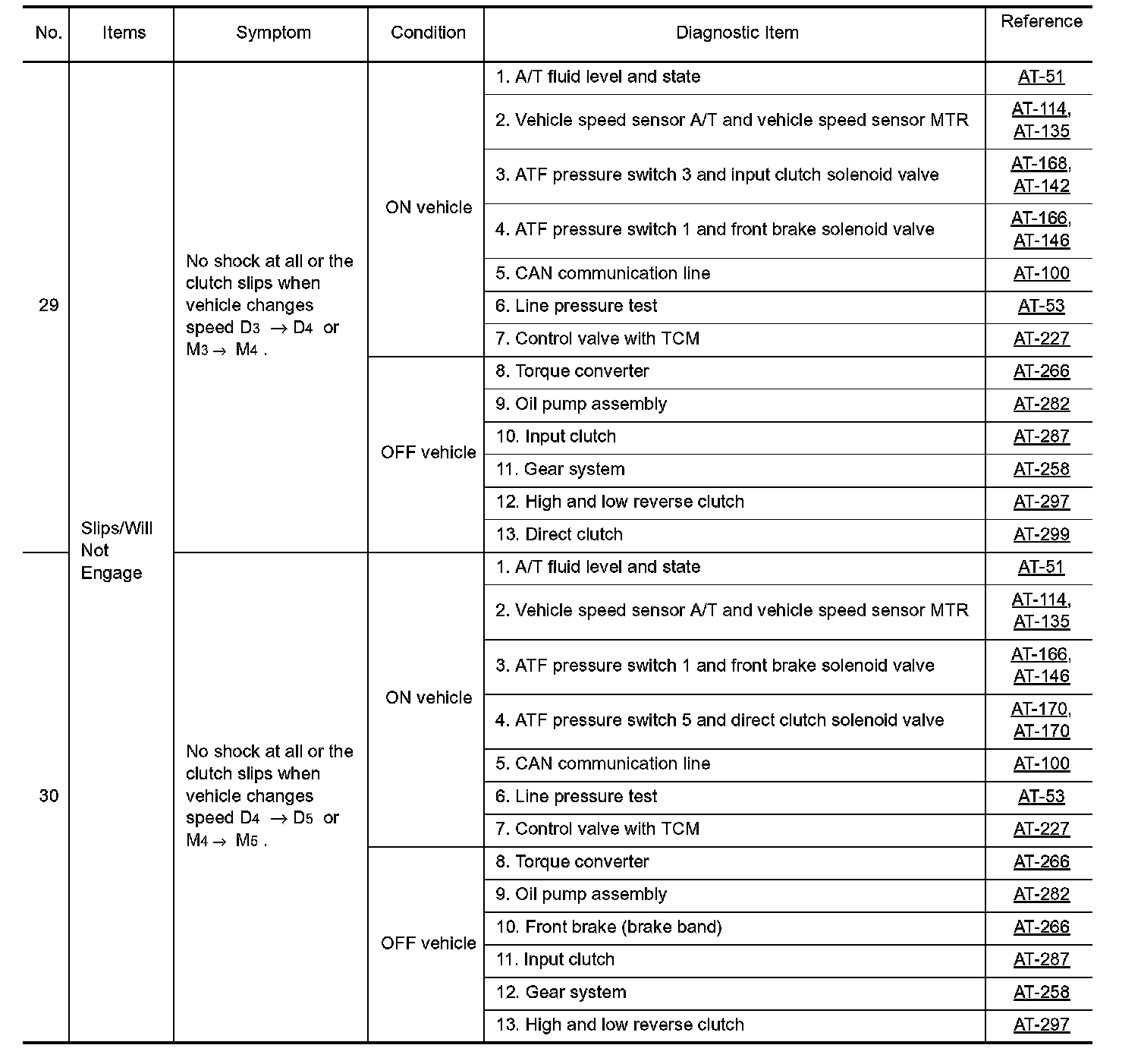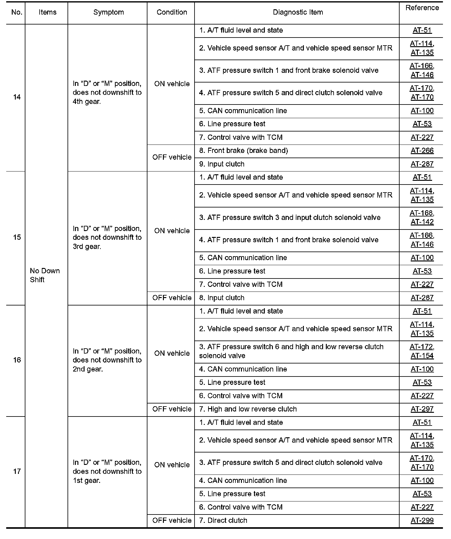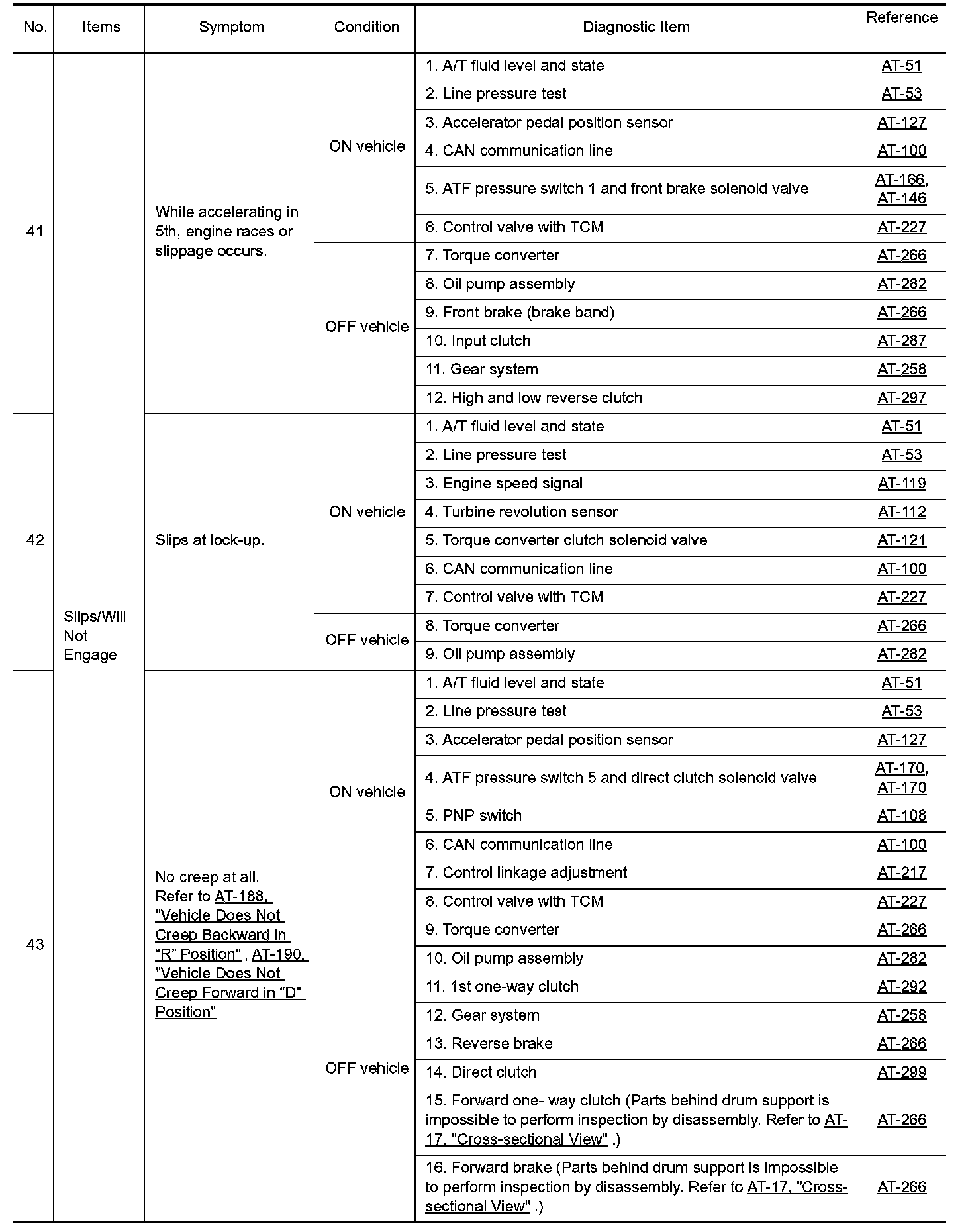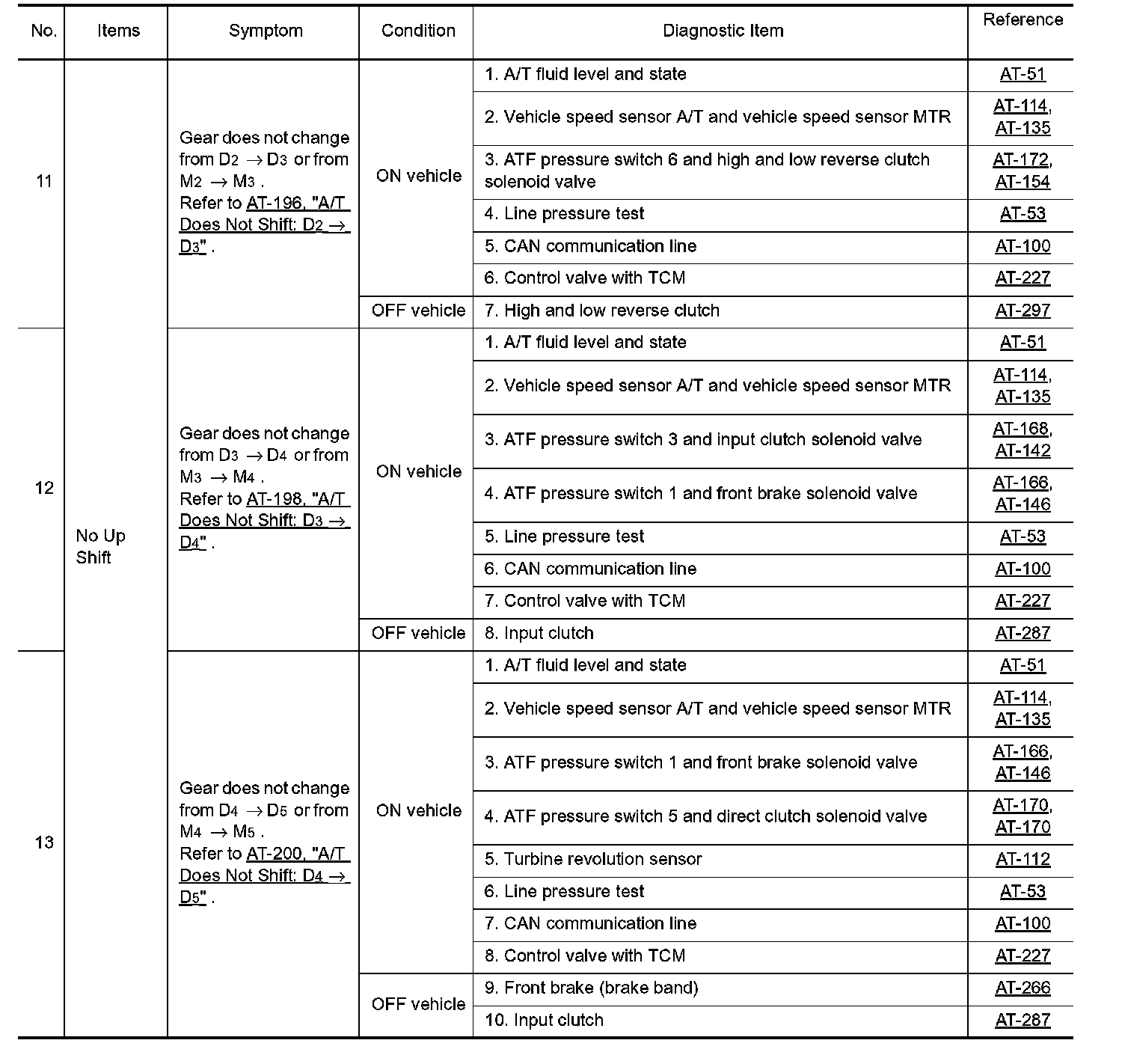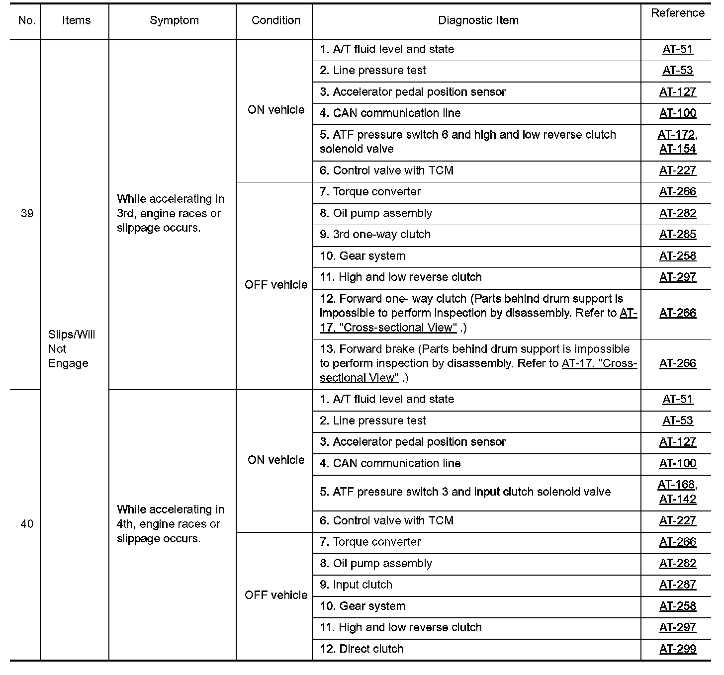 Overhaul and inspect inside the A/T only if A/T fluid condition is NG.