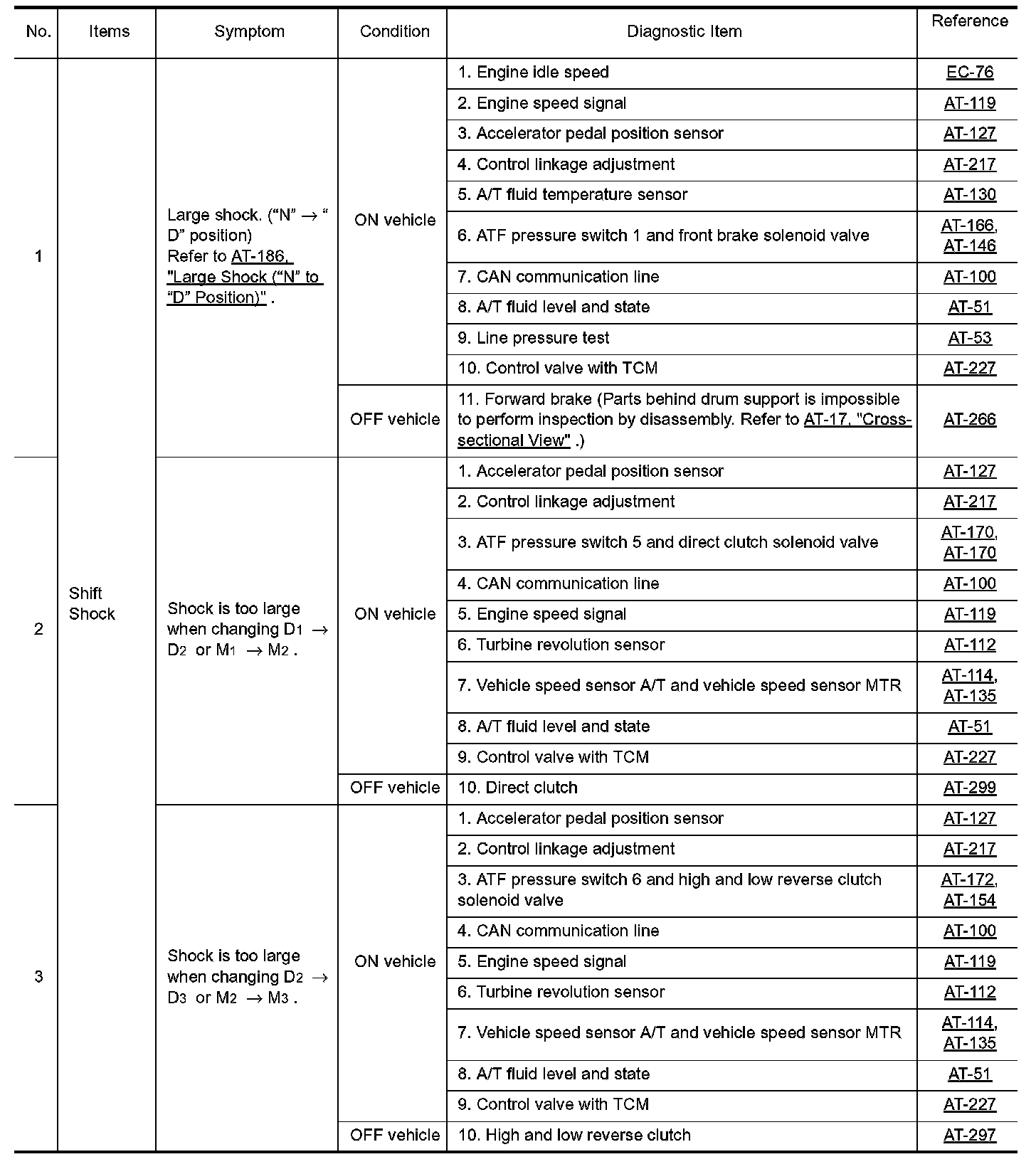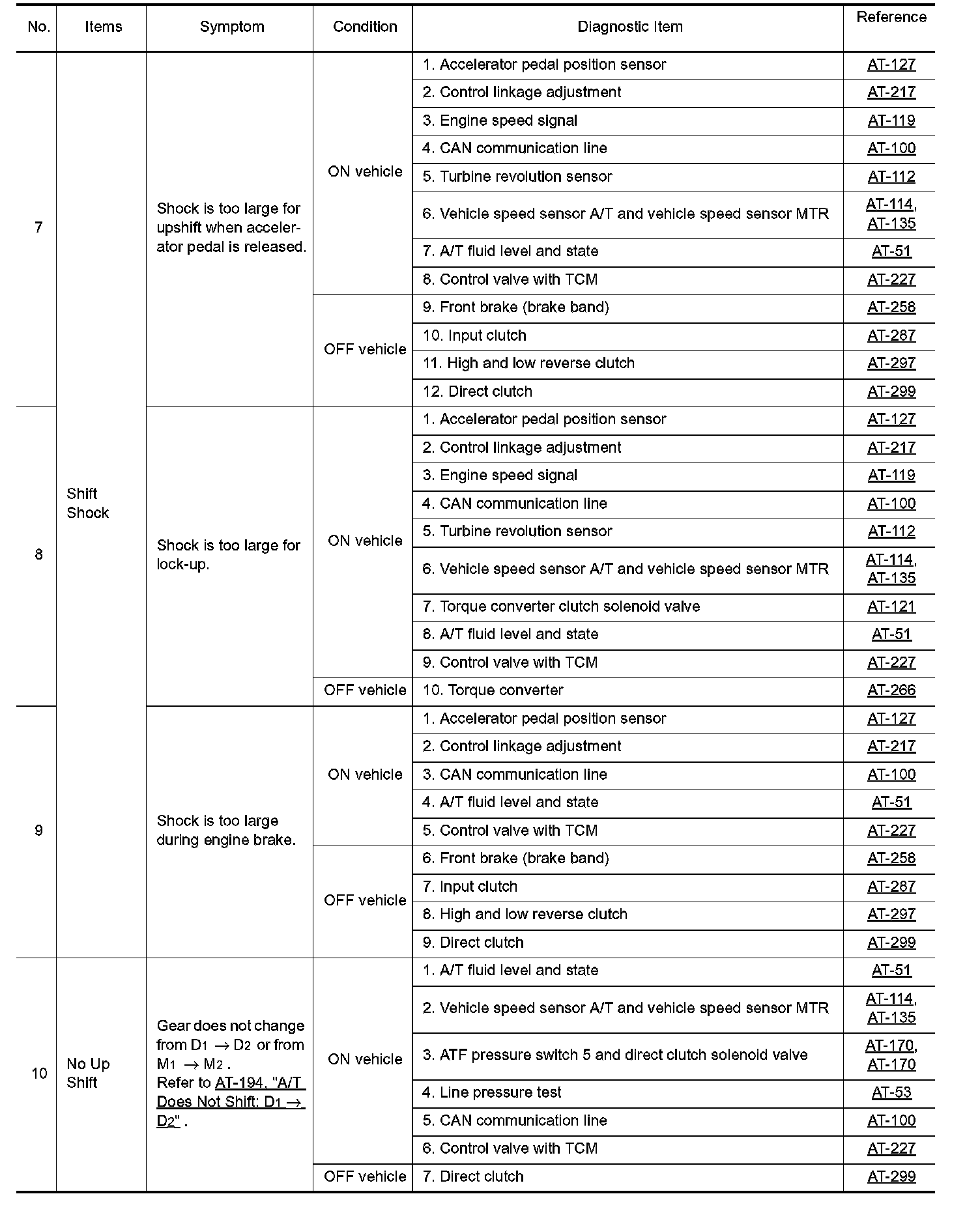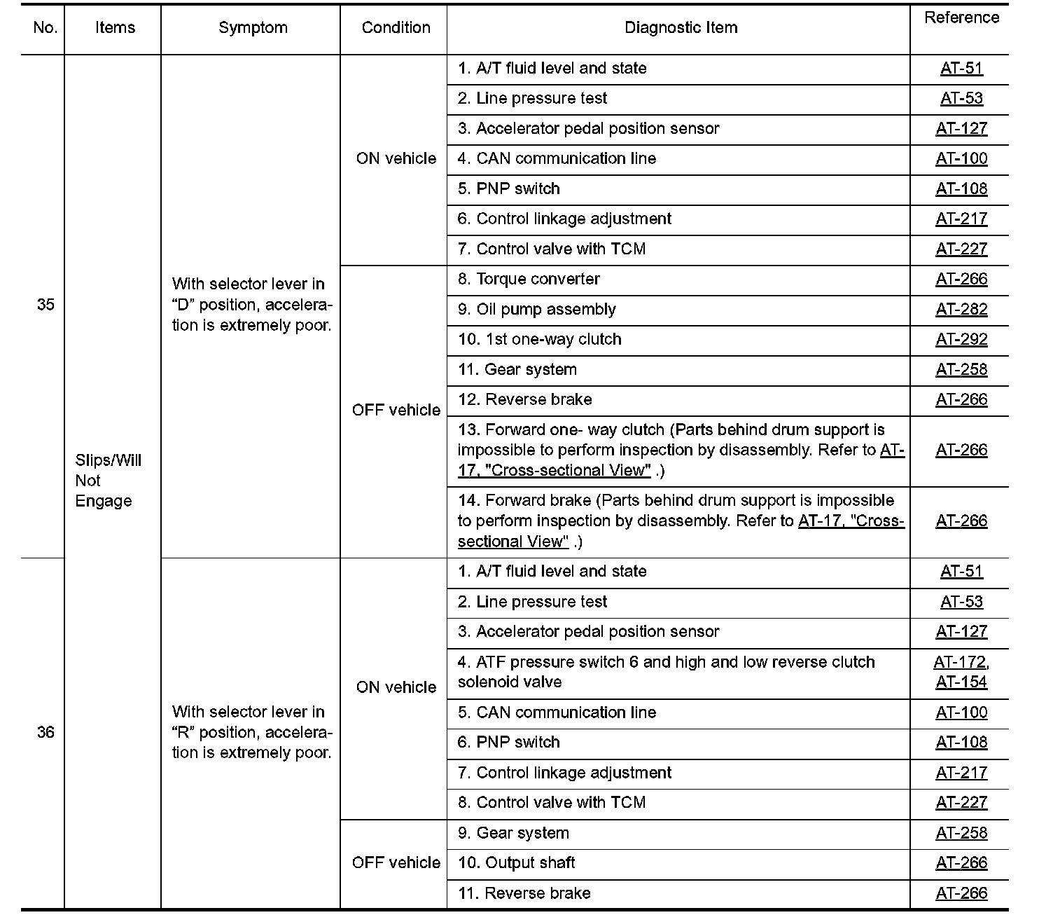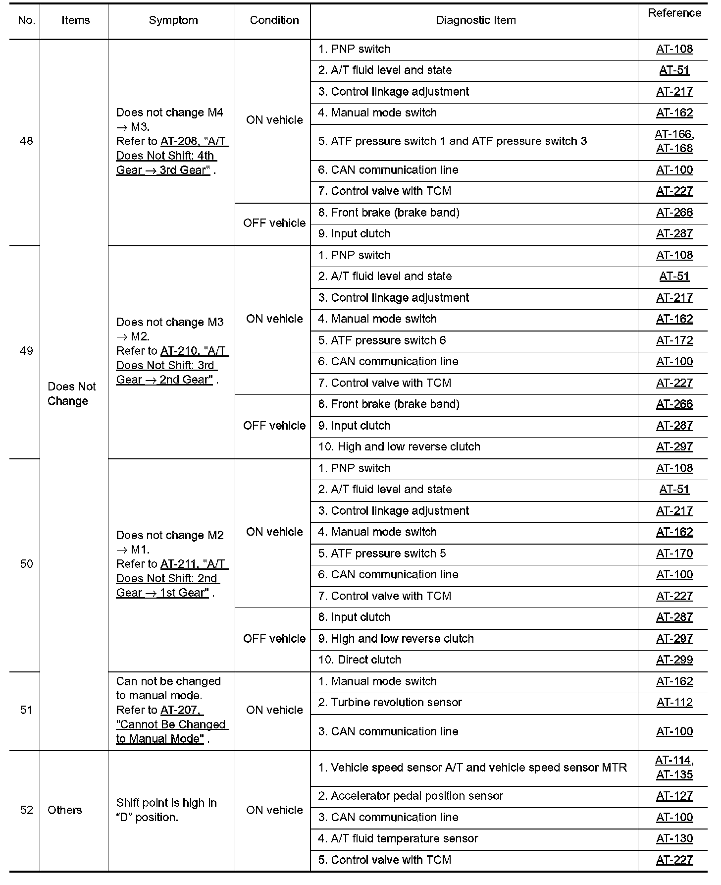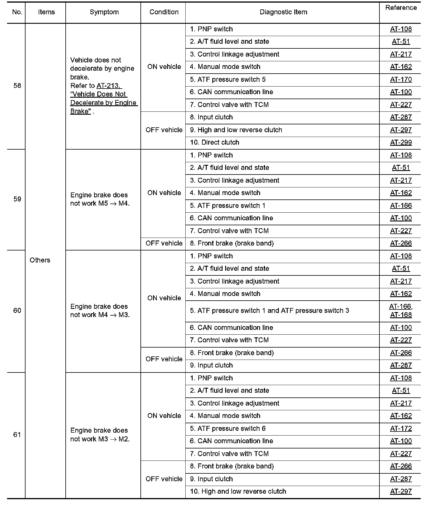 Overhaul and inspect inside the A/T only if A/T fluid condition is NG.