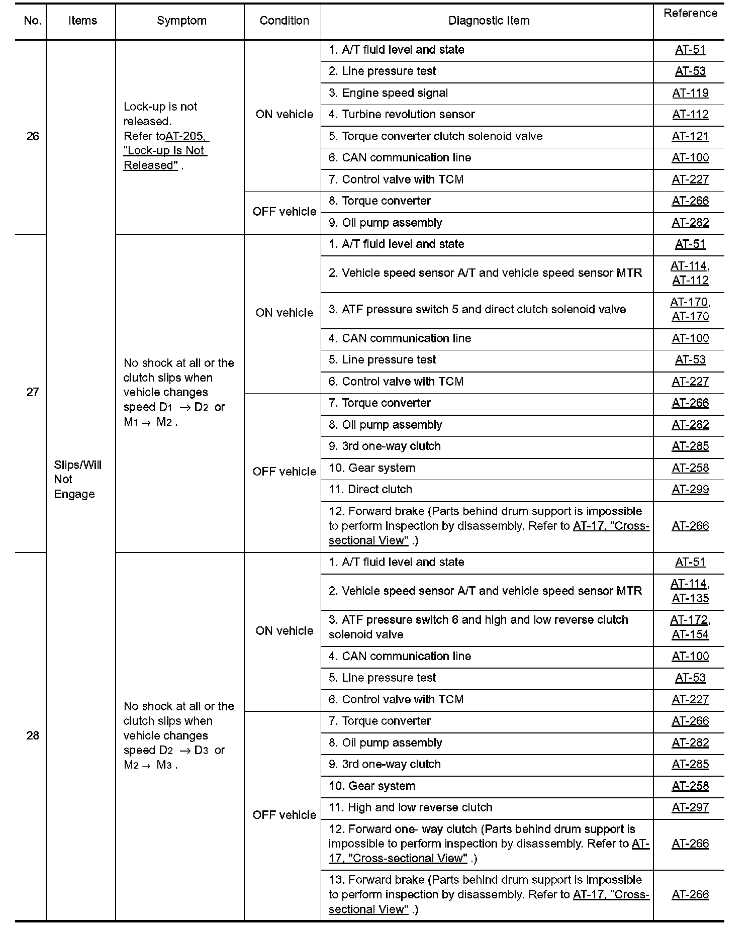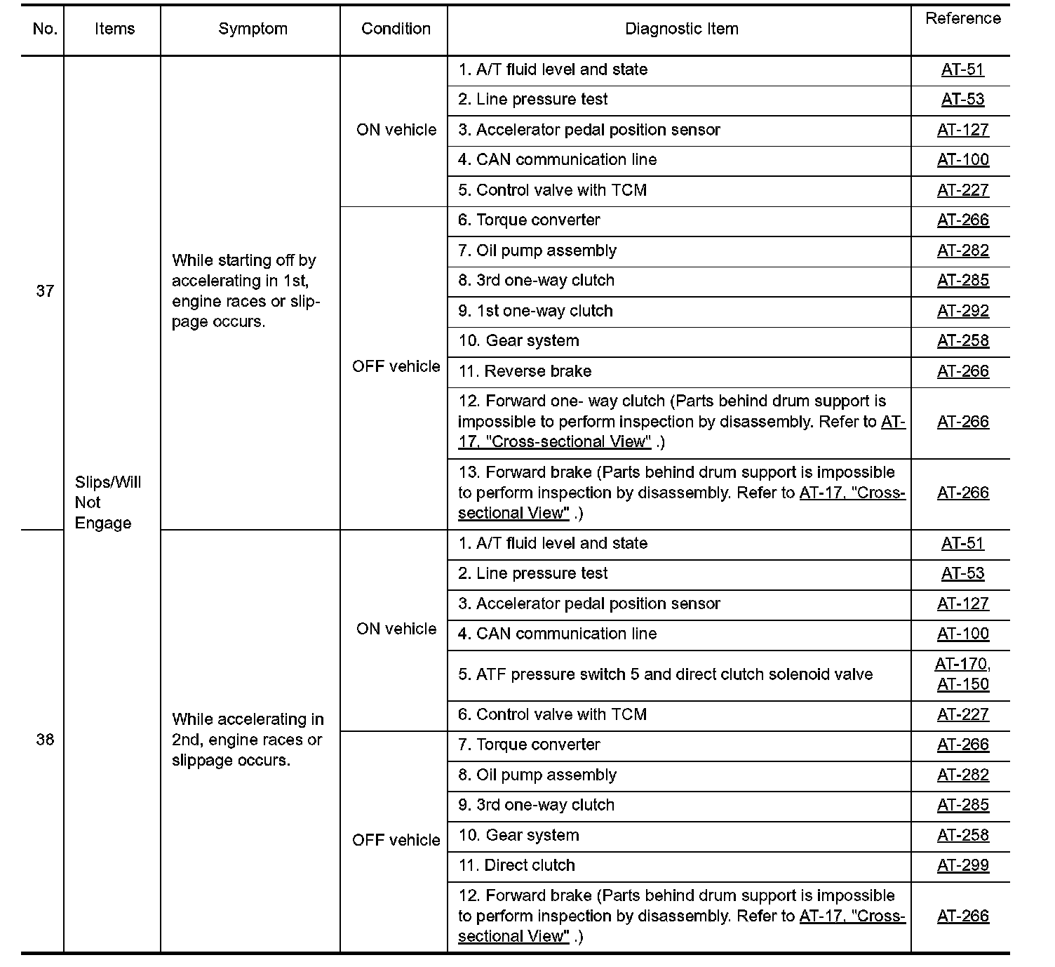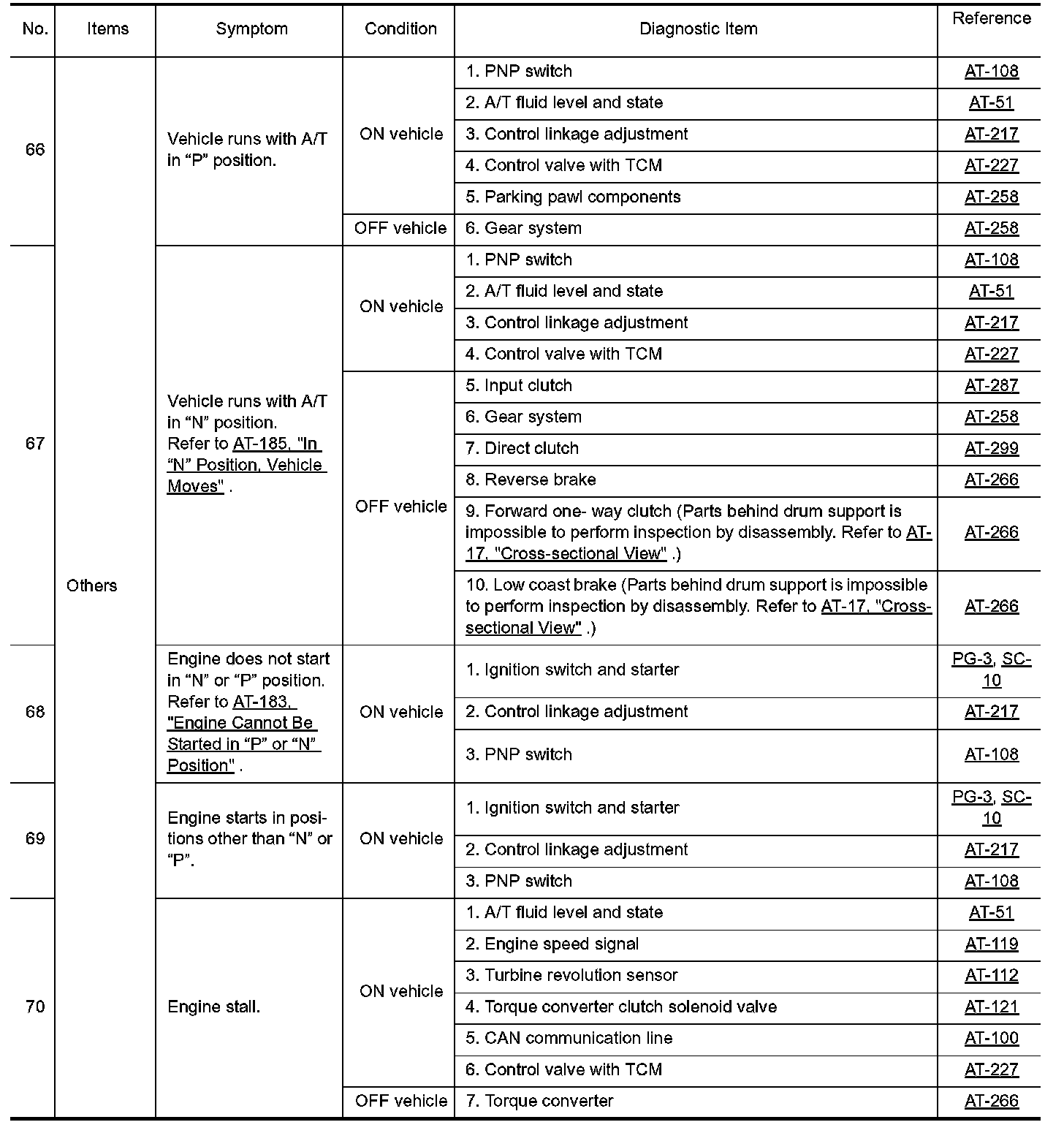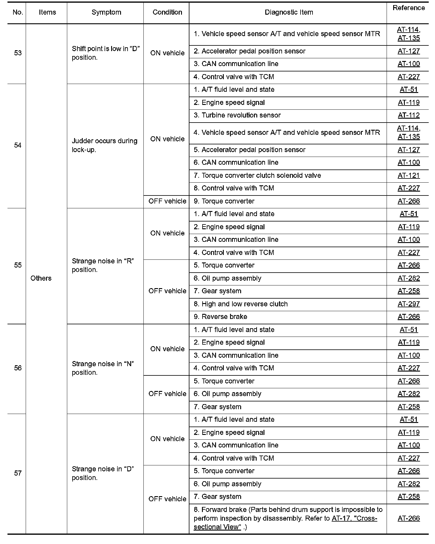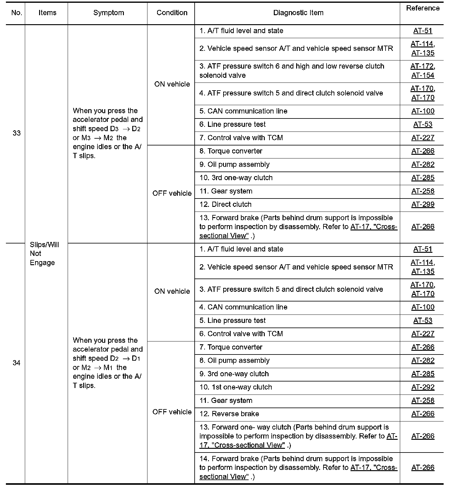 Overhaul and inspect inside the A/T only if A/T fluid condition is NG.