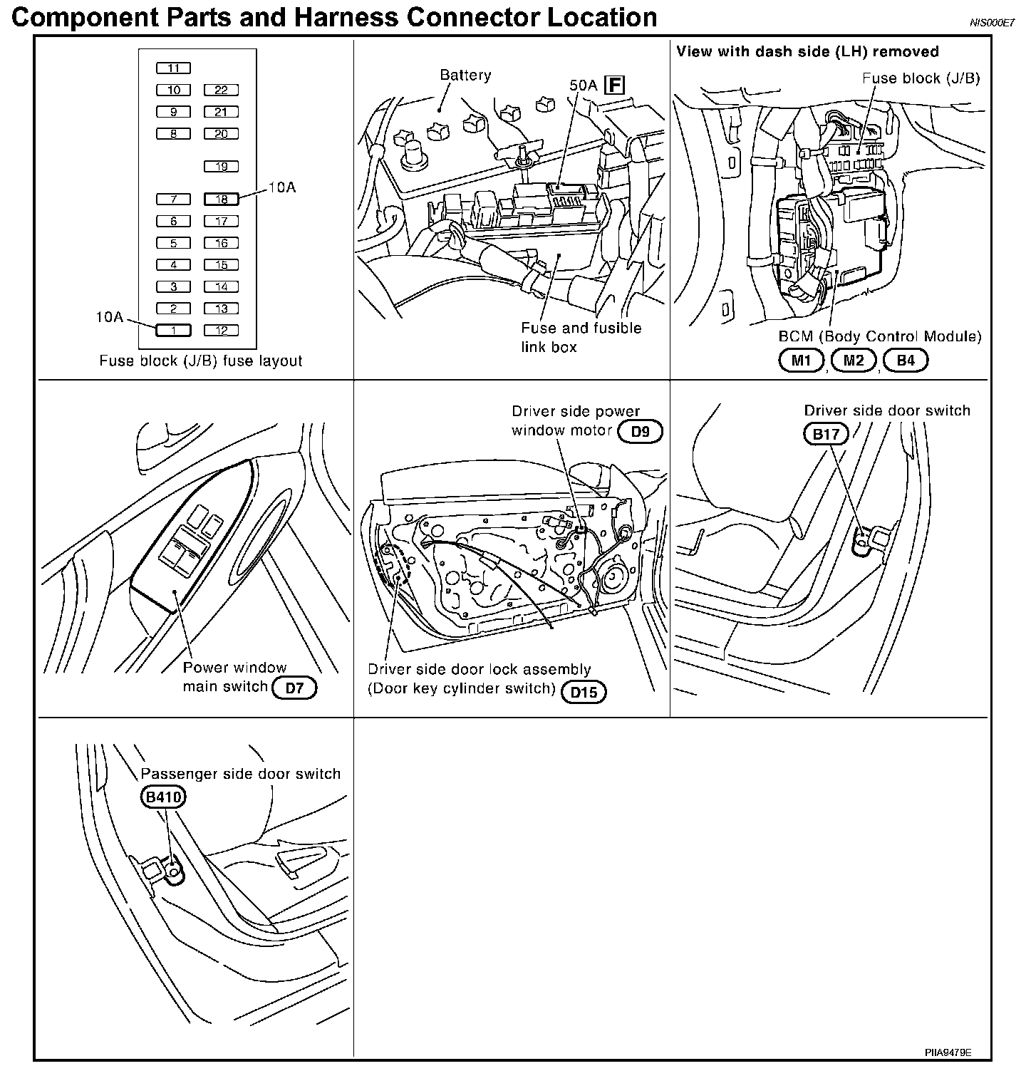 Component Parts And Harness Connector Location: