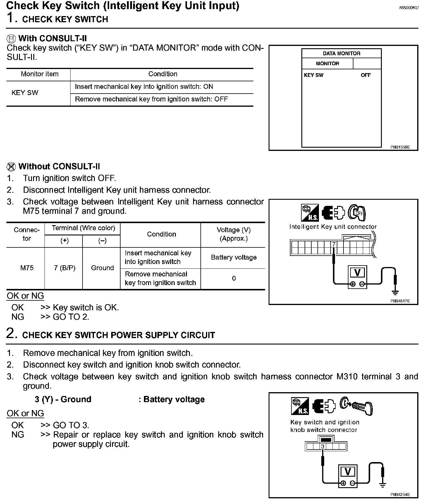 Check Key Switch (Intelligent Key Unit Input) (Steps 1 - 2):