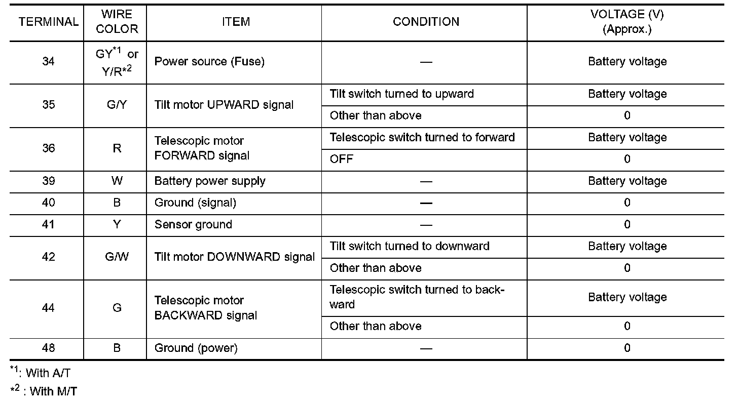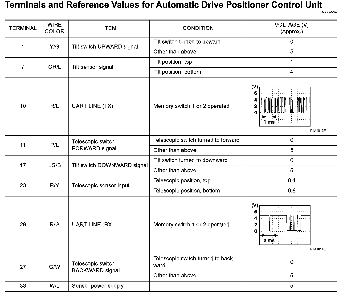 Terminals And Reference Values For Automatic Drive Positioner Control Unit Part 1: