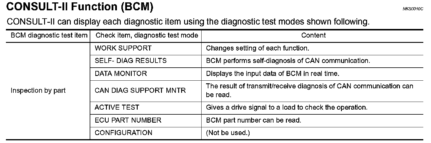 CONSULT-II Function (BCM)