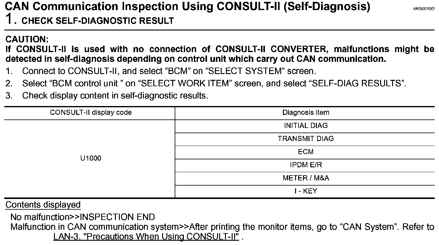 CAN Communication Inspection Using CONSULT-II (Self - Diagnosis):