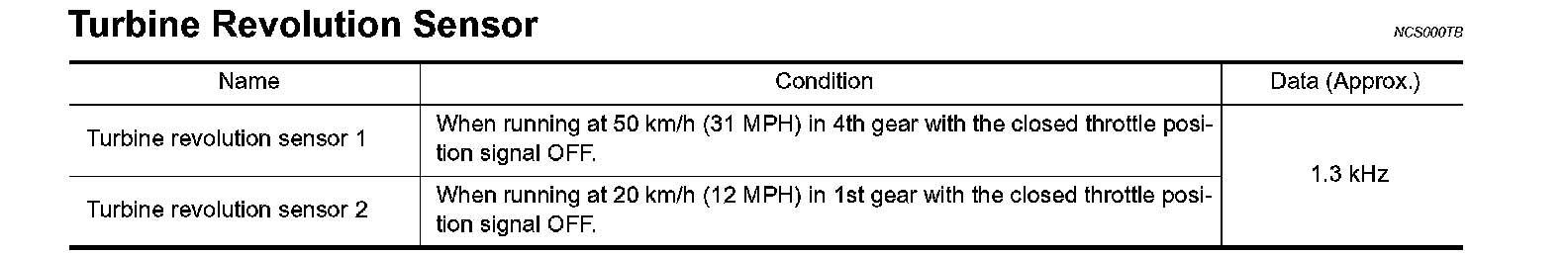 Turbine Revolution Sensor: