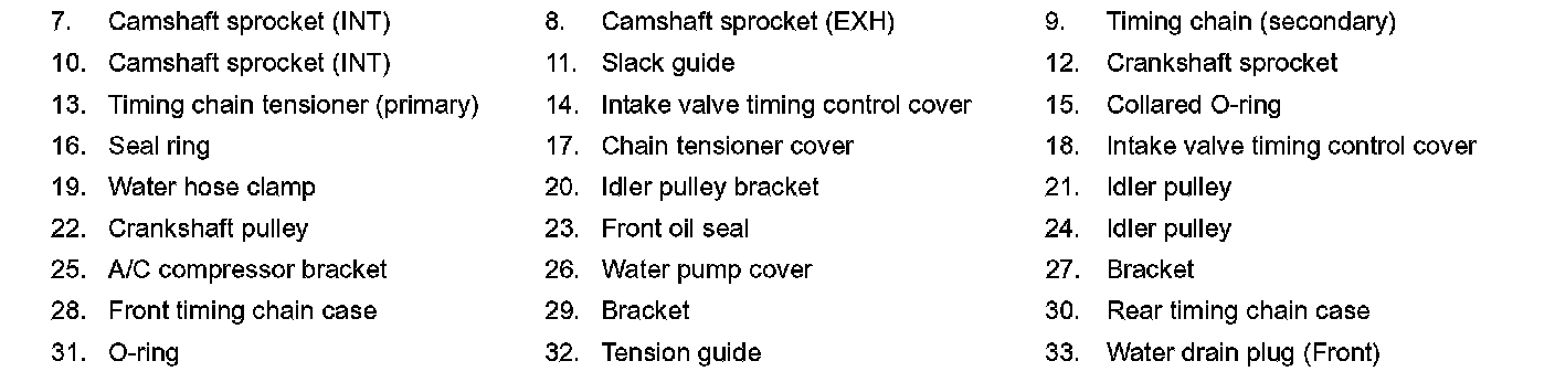 Timing CoverTighten mounting bolts to the specified torque in numerical order as shown in the figure.