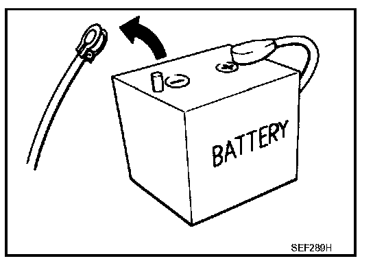 - Before removing parts, turn ignition switch OFF and then disconnect battery ground cable.