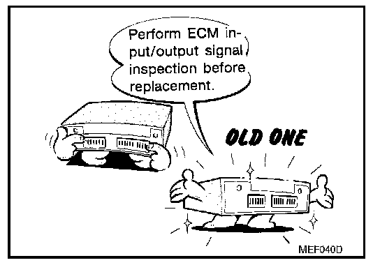 - Before replacing ECM, perform ECM Terminals and Reference Value inspection and make sure ECM functions properly. Refer to EC-112, "ECM Terminals and Reference Value". Pinout Values and Diagnostic Parameters