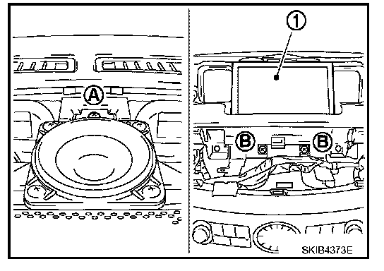 4. Remove screws (B) and disconnect connector, and remove display (1).