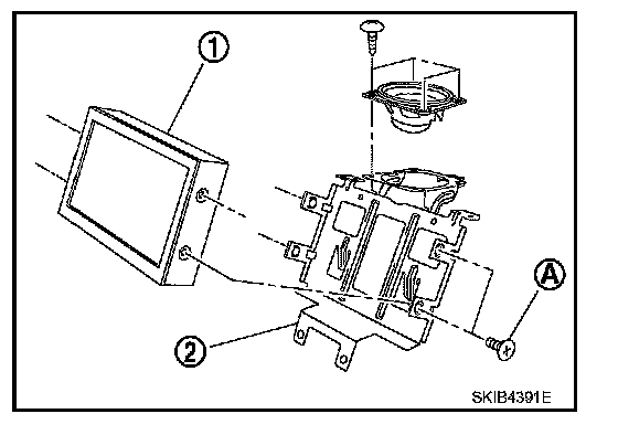 5. Remove screws (A) separate front display (1) unit from bracket (2).