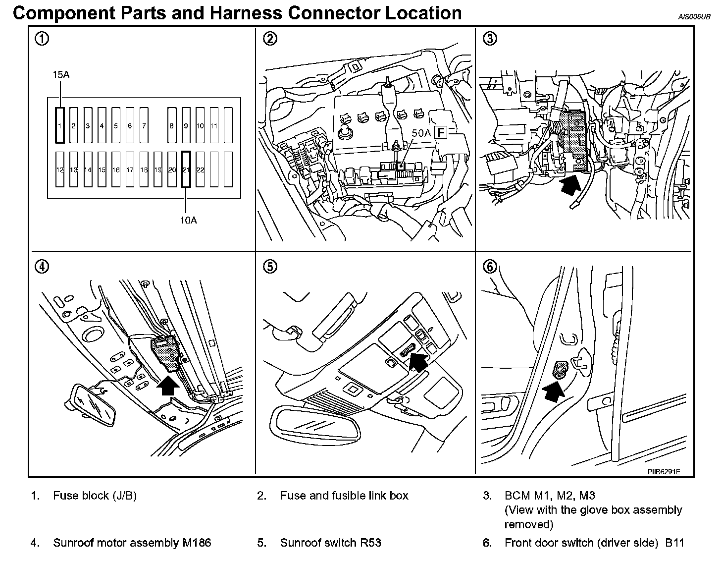 Component Parts And Harness Connector Location: