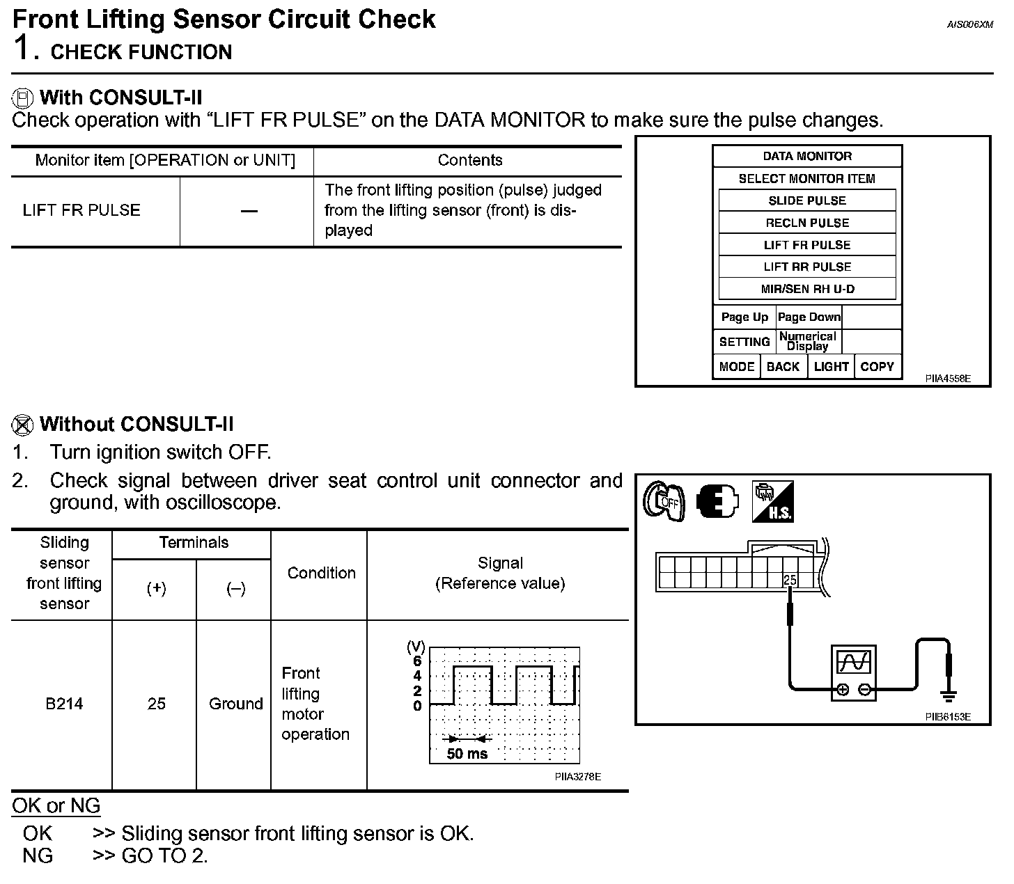 Front Lifting Sensor Circuit Check