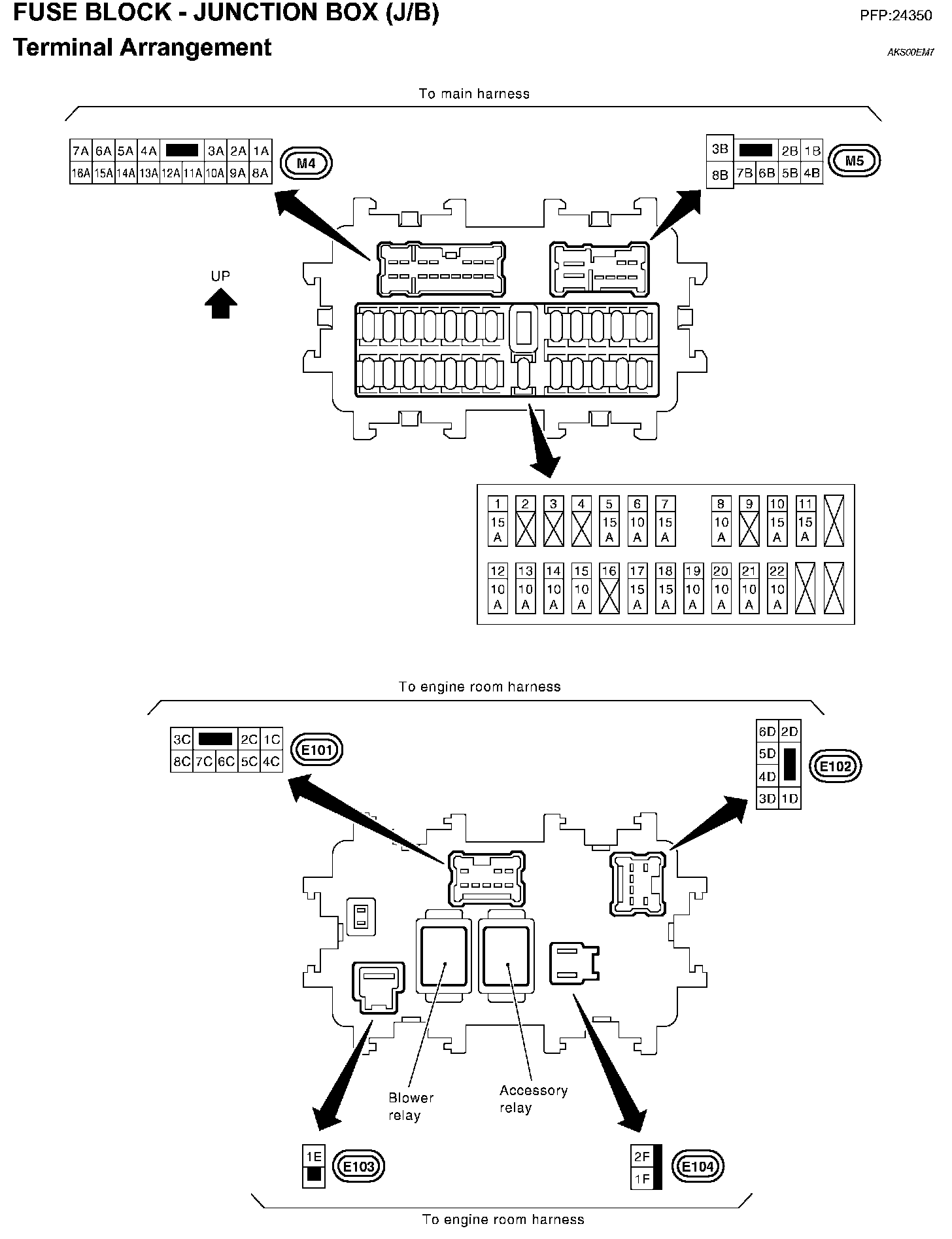 Fuse Block Junction Box (J/B) - Terminal Arrangement: