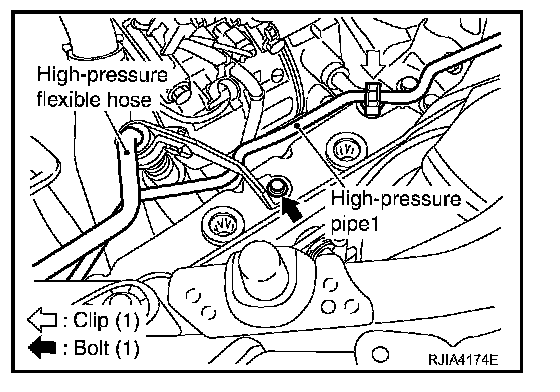9. Remove mounting bolt for high-pressure flexible hose bracket.