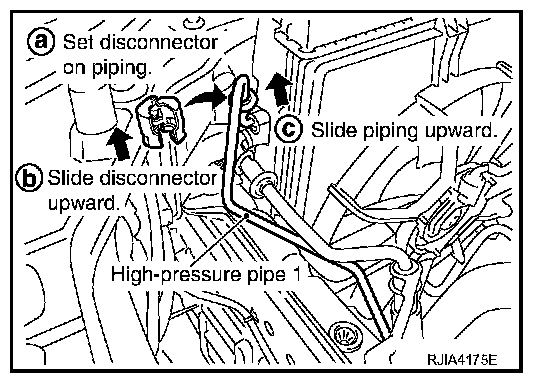 c. Slide A/C piping upward and disconnect it.