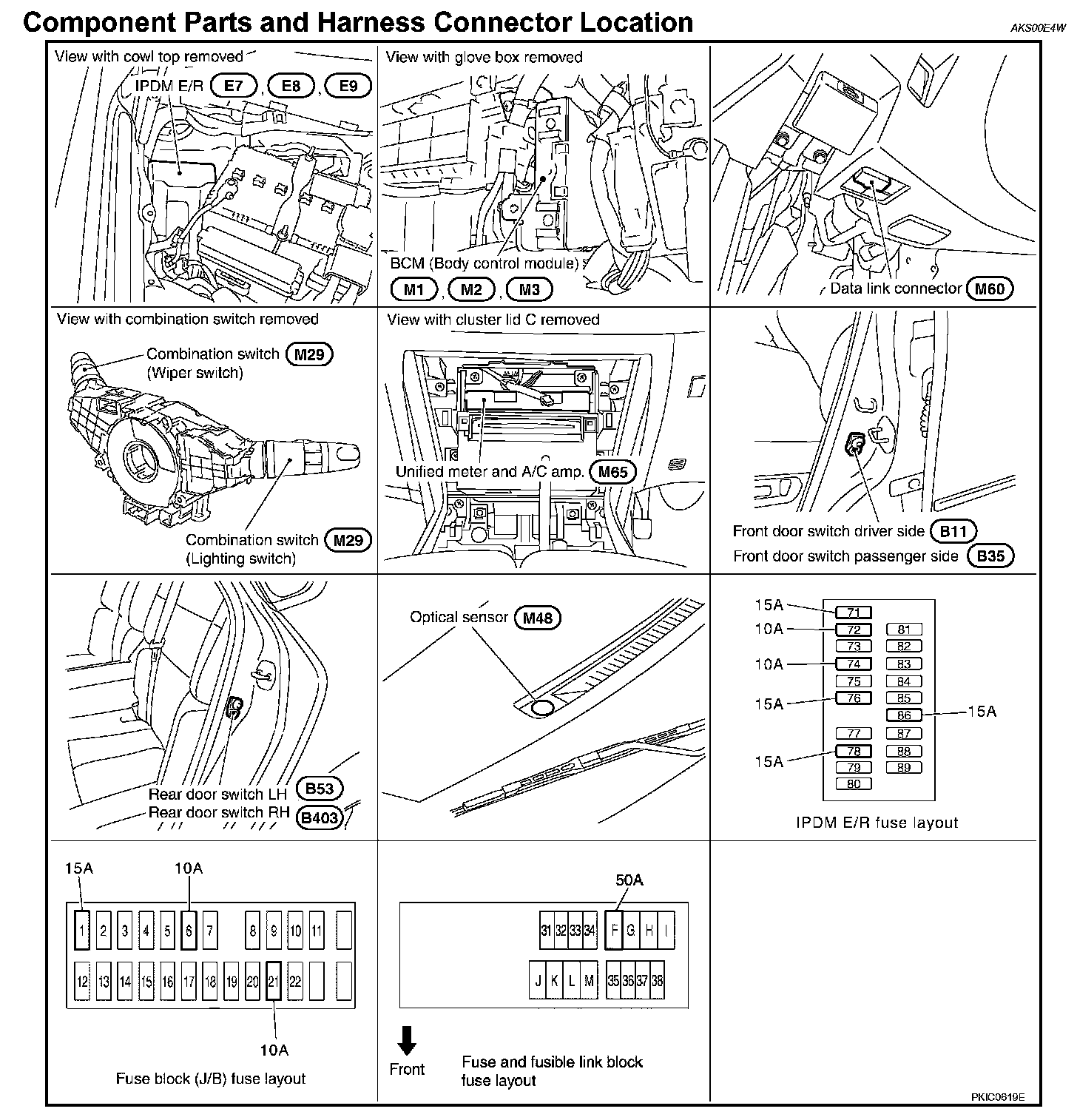 Component Parts And Harness Connector Location:
