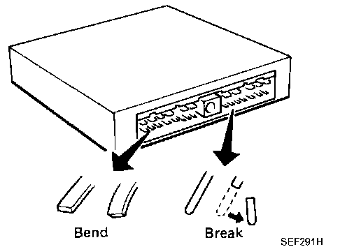 ^ When connecting or disconnecting pin connectors into or from AWD control unit, take care not to damage pin terminals (bend or break).