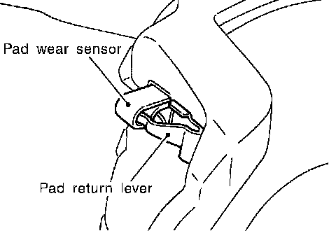 ^ Both inner and outer pads have a pad return system on the pad retainer. Install pad return lever securely to pad wear sensor.