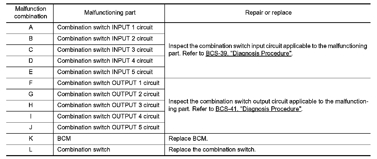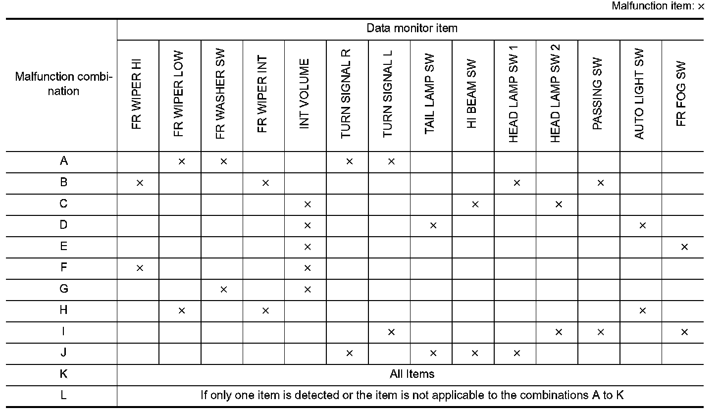 SYMPTOM DIAGNOSISCOMBINATION SWITCH SYSTEM SYMPTOMS