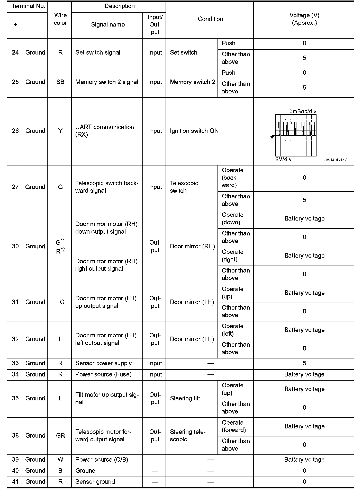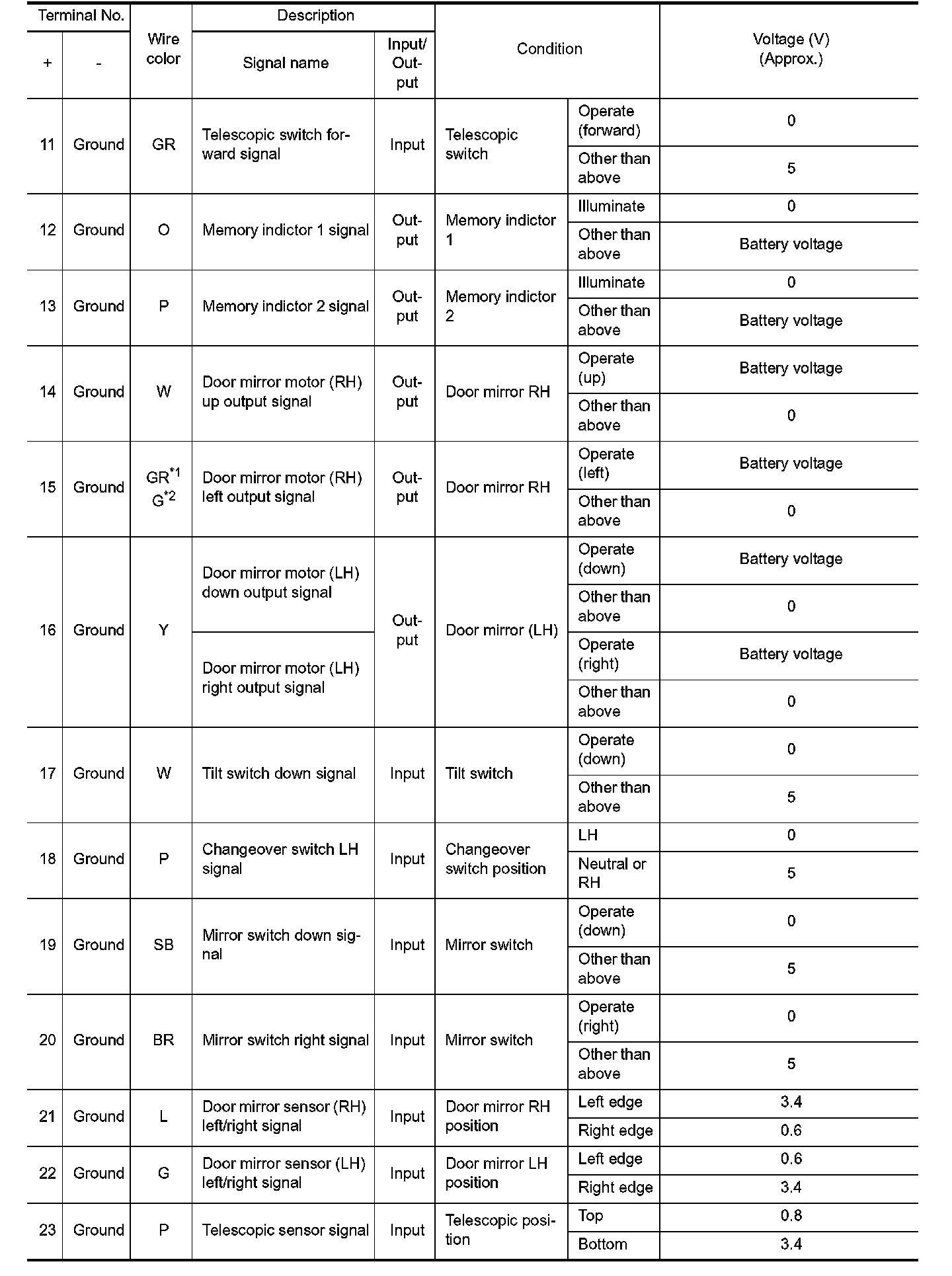 AUTOMATIC DRIVE POSITIONER CONTROL UNITReference ValueTERMINAL LAYOUTPHYSICAL VALUESTerminals And Reference Values (Part 1):